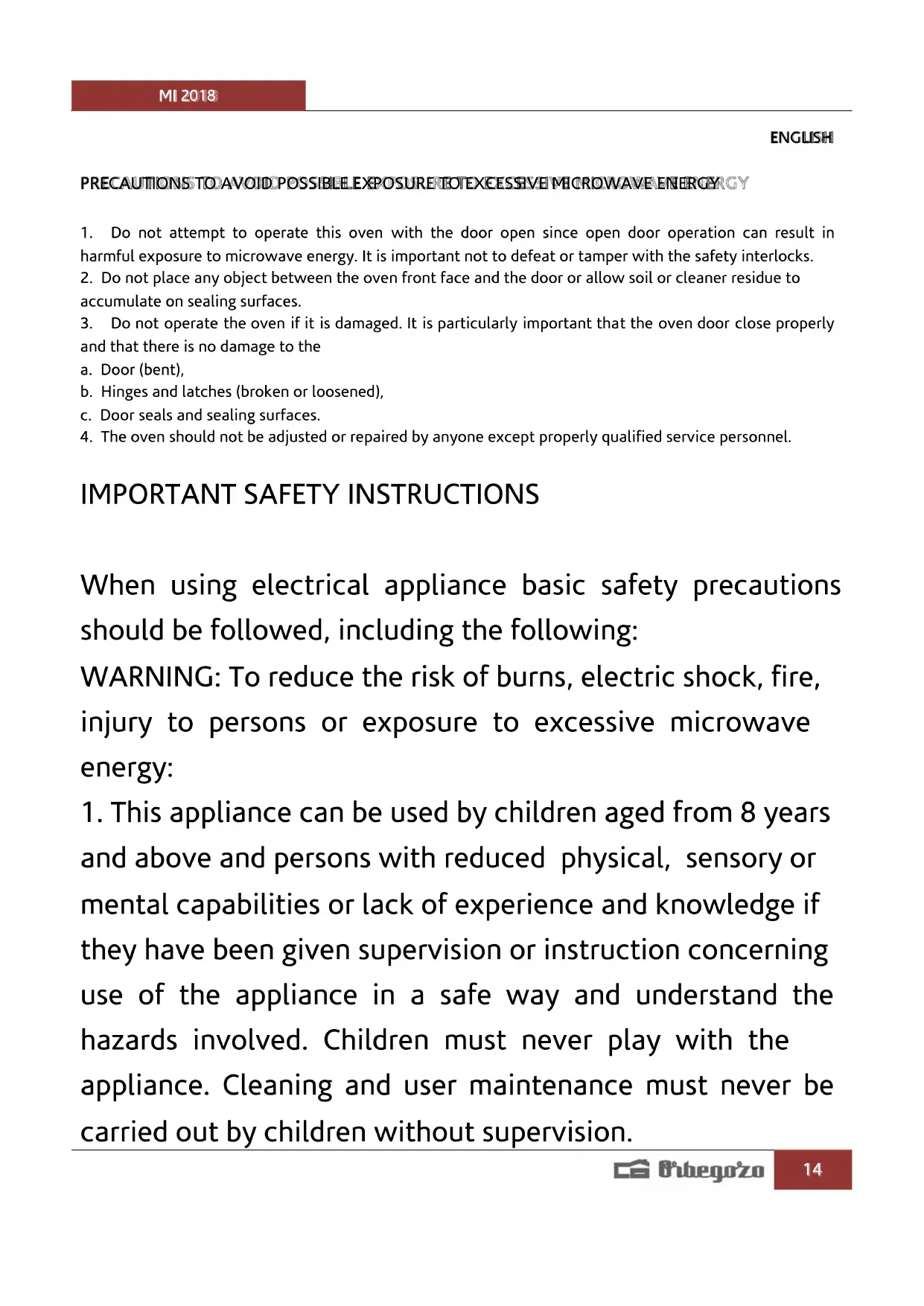 MI 2018 - Microwave Oven Orbegozo - Free user manual and instructions