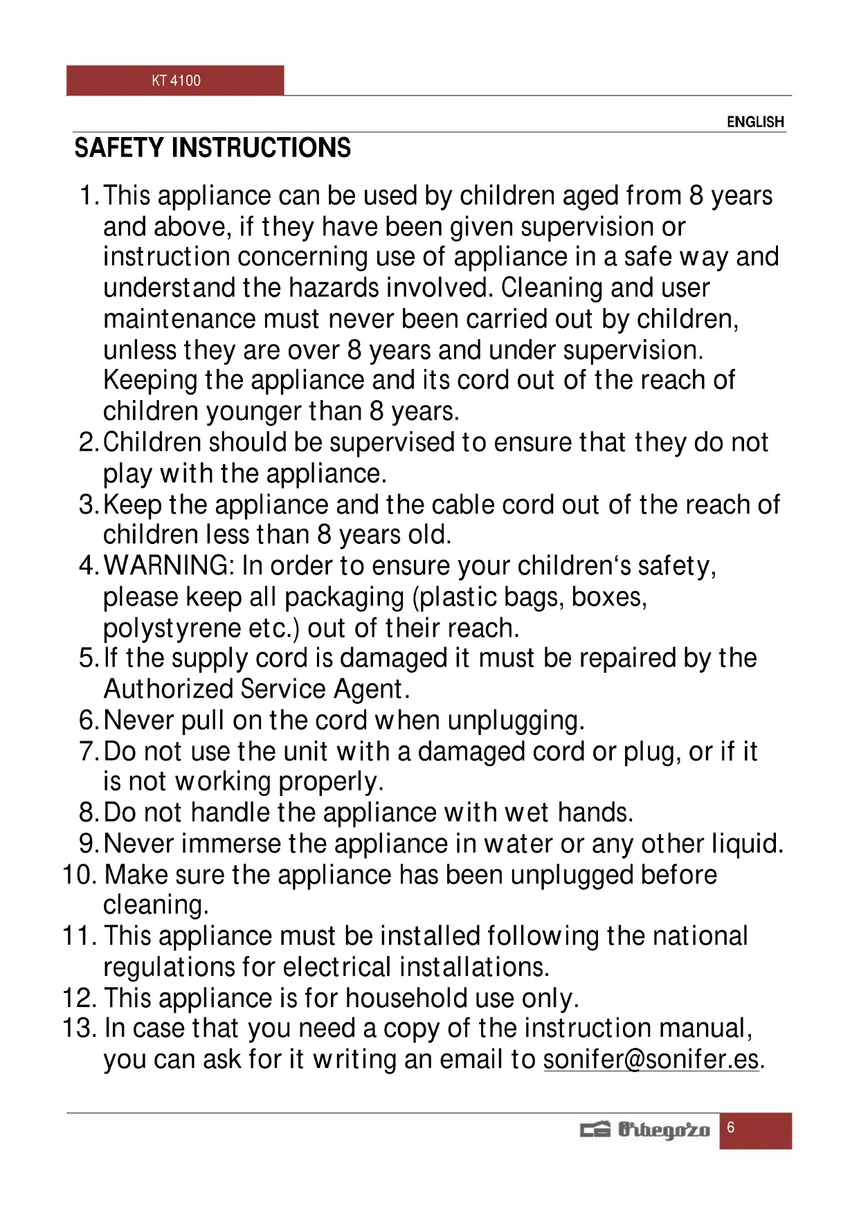 Find the device manual for free KT 4100 Orbegozo in PDF.