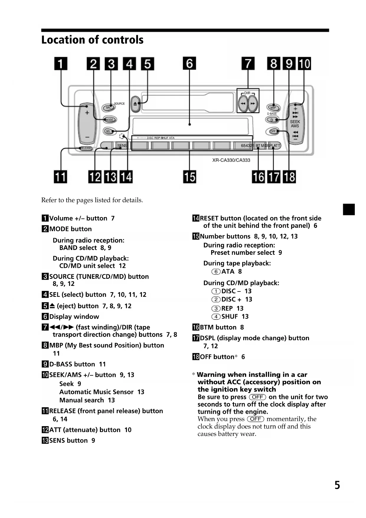 3 SOURCE (TUNER/CD/MD) button 8,9,12