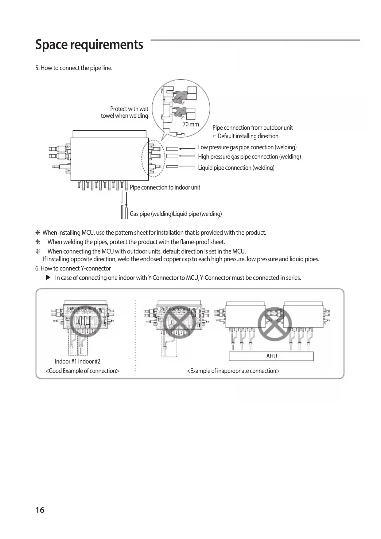 Space requirements 1. Refrigerant noise can be generated during MCU operation. Do not install the unit in spaces that require silence, such as bedrooms, libraries, hospitals, oces etc.