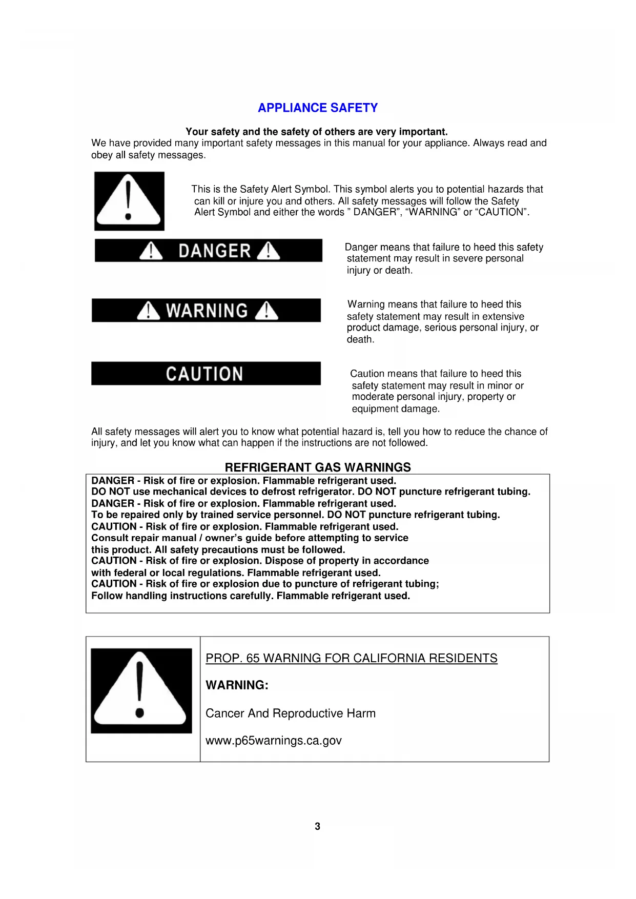 Registration Information and Registration Card LAST PAGE3 APPLIANCE SAFETY Your safety and the safety of others are very important. We have provided many important safety messages in this manual for your appliance. Always read and obey all safety messages.