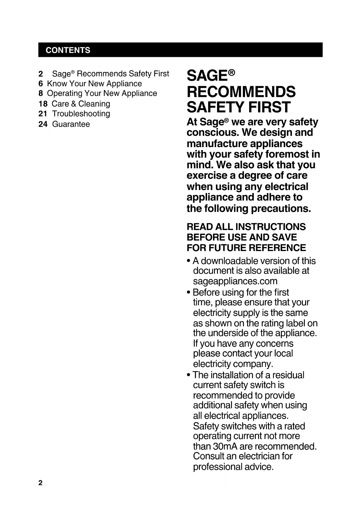 - A downloadable version of this document is also available at sageappliances.com