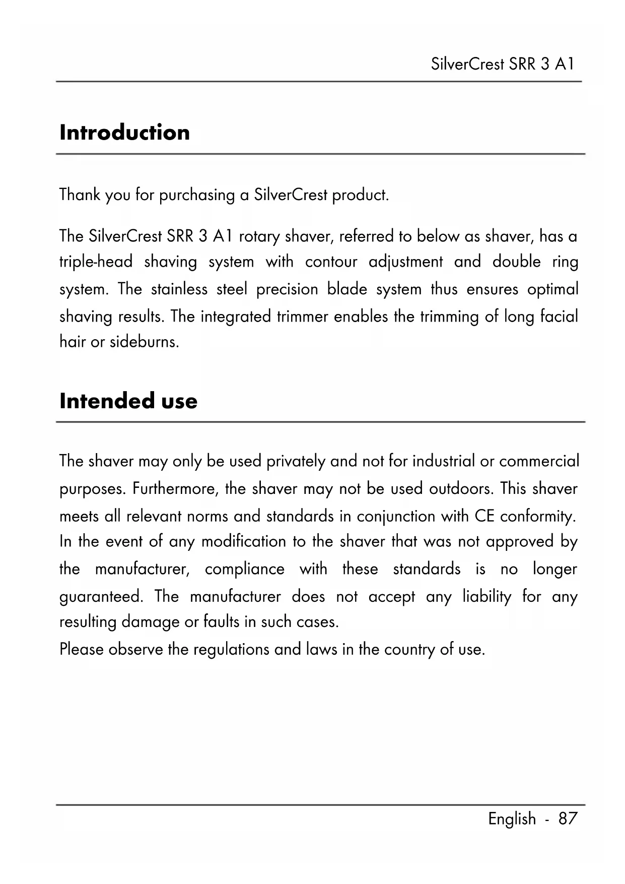 SRR 3 A1 - Shaver SILVERCREST - Free user manual and instructions