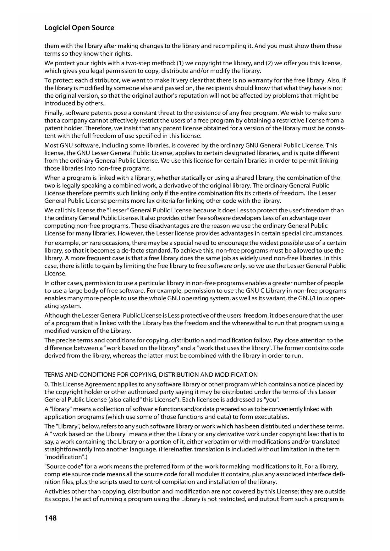 o use a large body of free software. For example, permission to use the GNU C Library in non-free programs enables many more people to use the whole GNU operating system, as well as its variant, the GNU/Linux oper- ating system. Although the Lesser General Public License is Less protective of the users' freedom, it does ensure that the user of a program that is linked with the Library has the freedom and the wherewithal to run that program using a modified version of the Library. The precise terms and conditions for copying, distributio n and modification follow. Pay close attention to the difference between a "work based on the library" and a "work that uses the library". The former contains code derived from the library, whereas the latter must be combined with the library in order to run. TERMS AND CONDITIONS FOR COPYING, DISTRIBUTION AND MODIFICATION