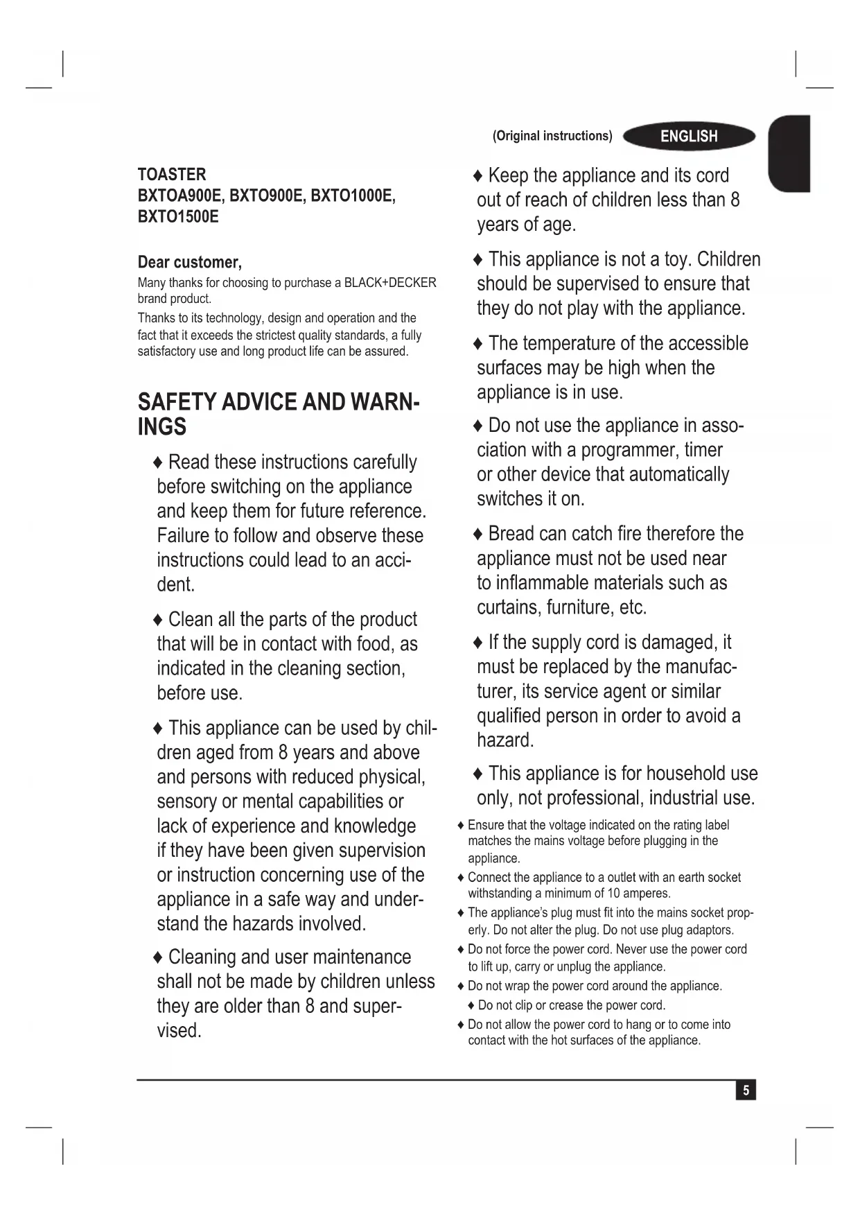 USER MANUAL BXTOA900E BLACK & DECKER