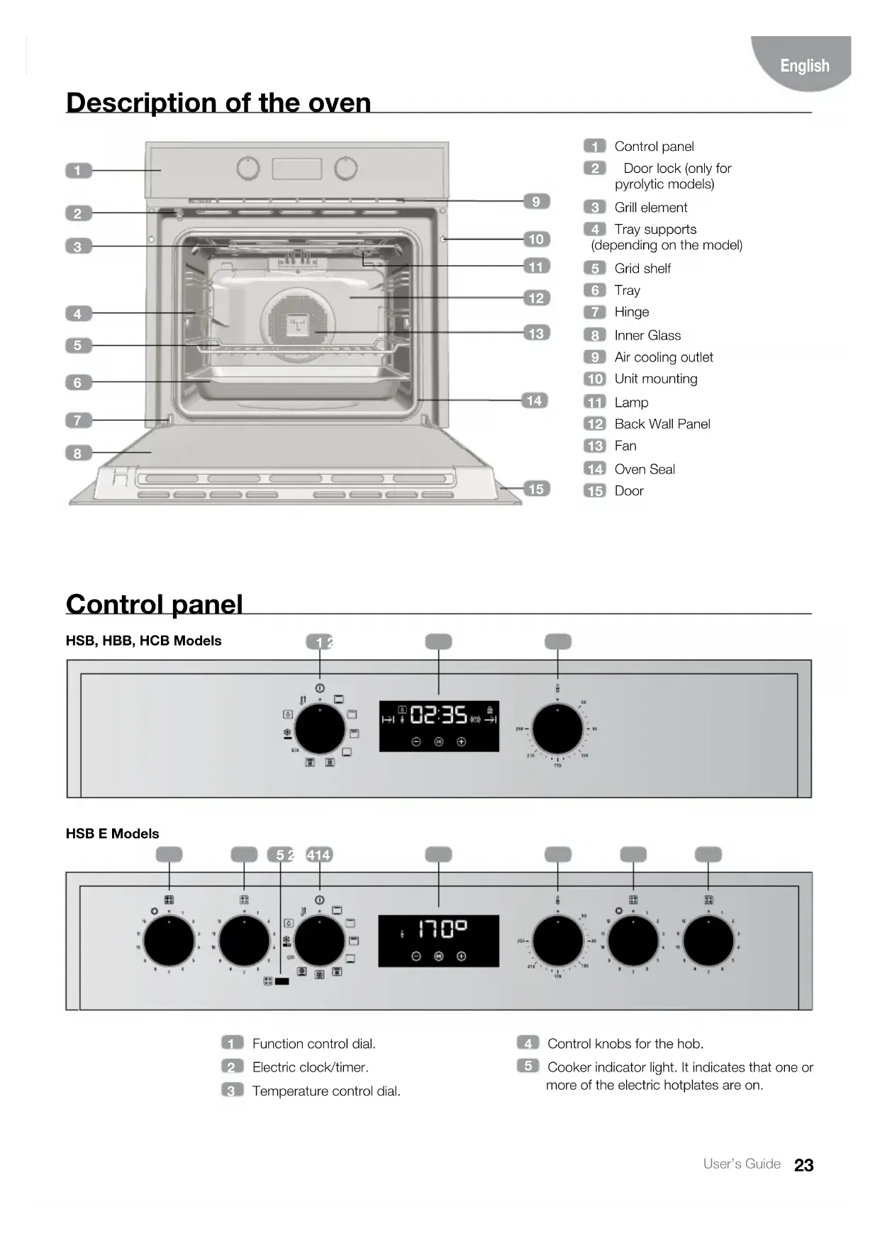 HSB P, HCB P Pyrolytic models25 User’s Guide English Electronic clock/timer description