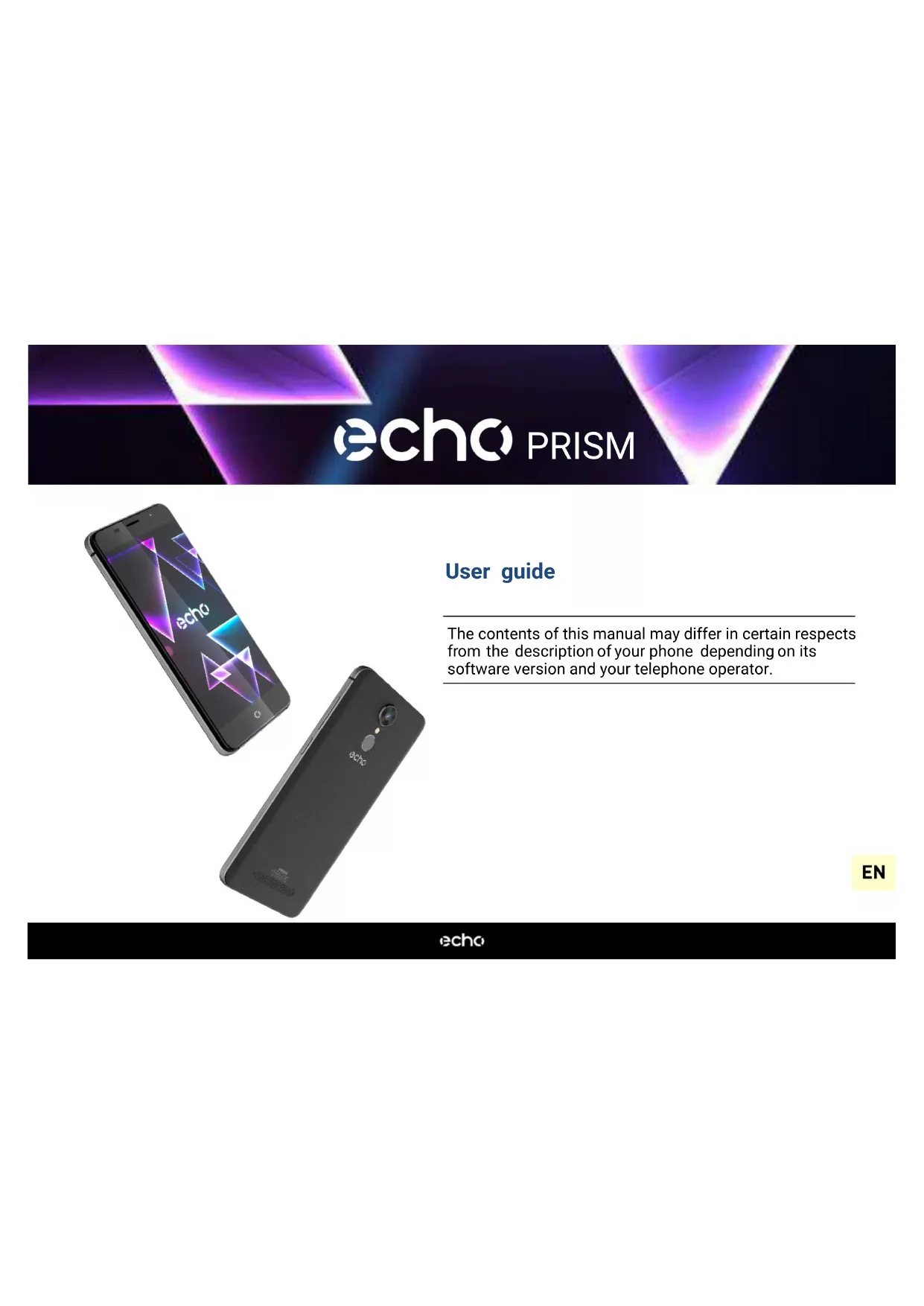 Download the instructions for your Smartphone in PDF format for free! Find your manual Prism - ECHO and take your electronic device back in hand. On this page are published all the documents necessary for the use of your device. Prism by ECHO.