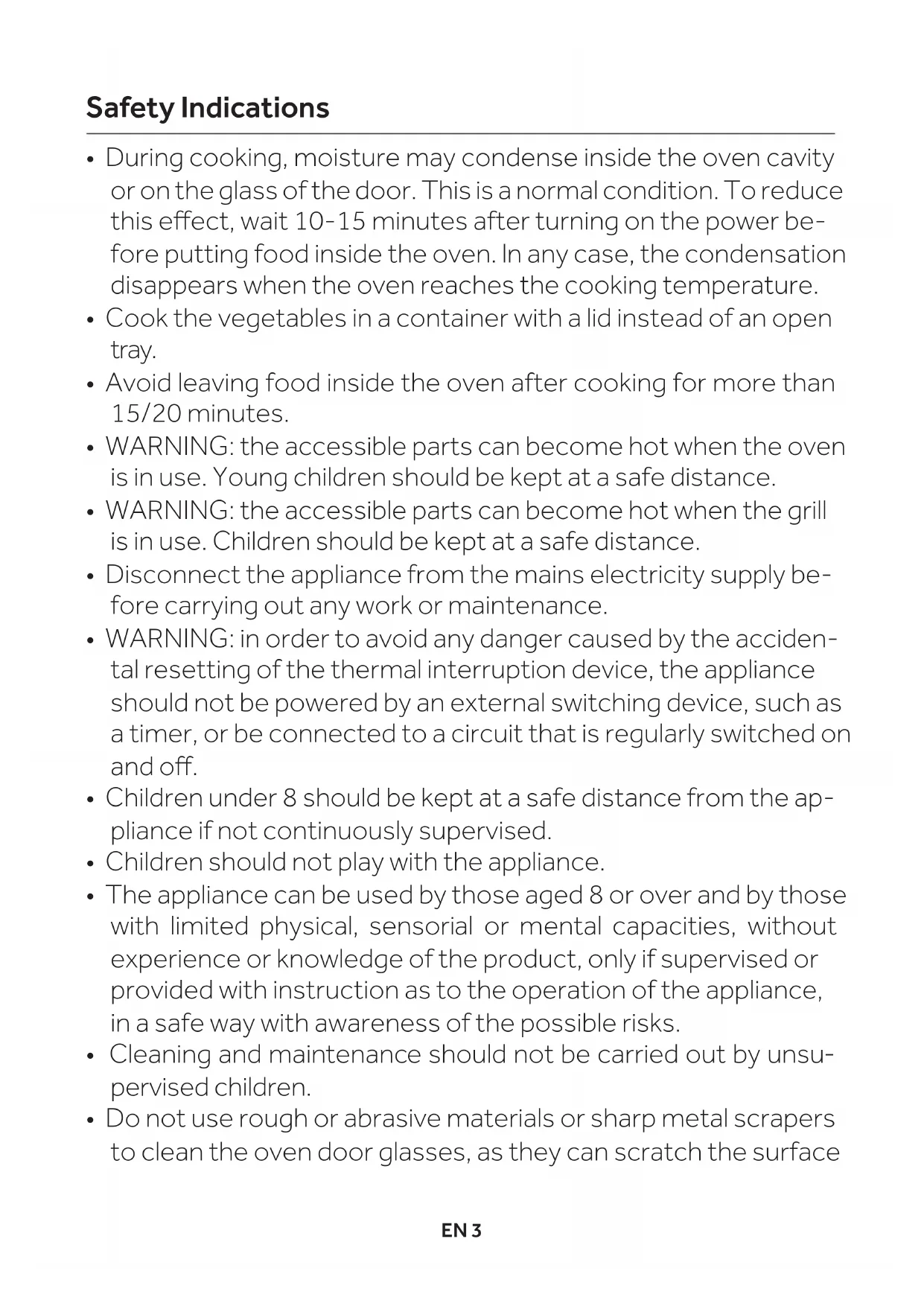 - Avoid leaving food inside the oven after cooking for more than 15/20 minutes.