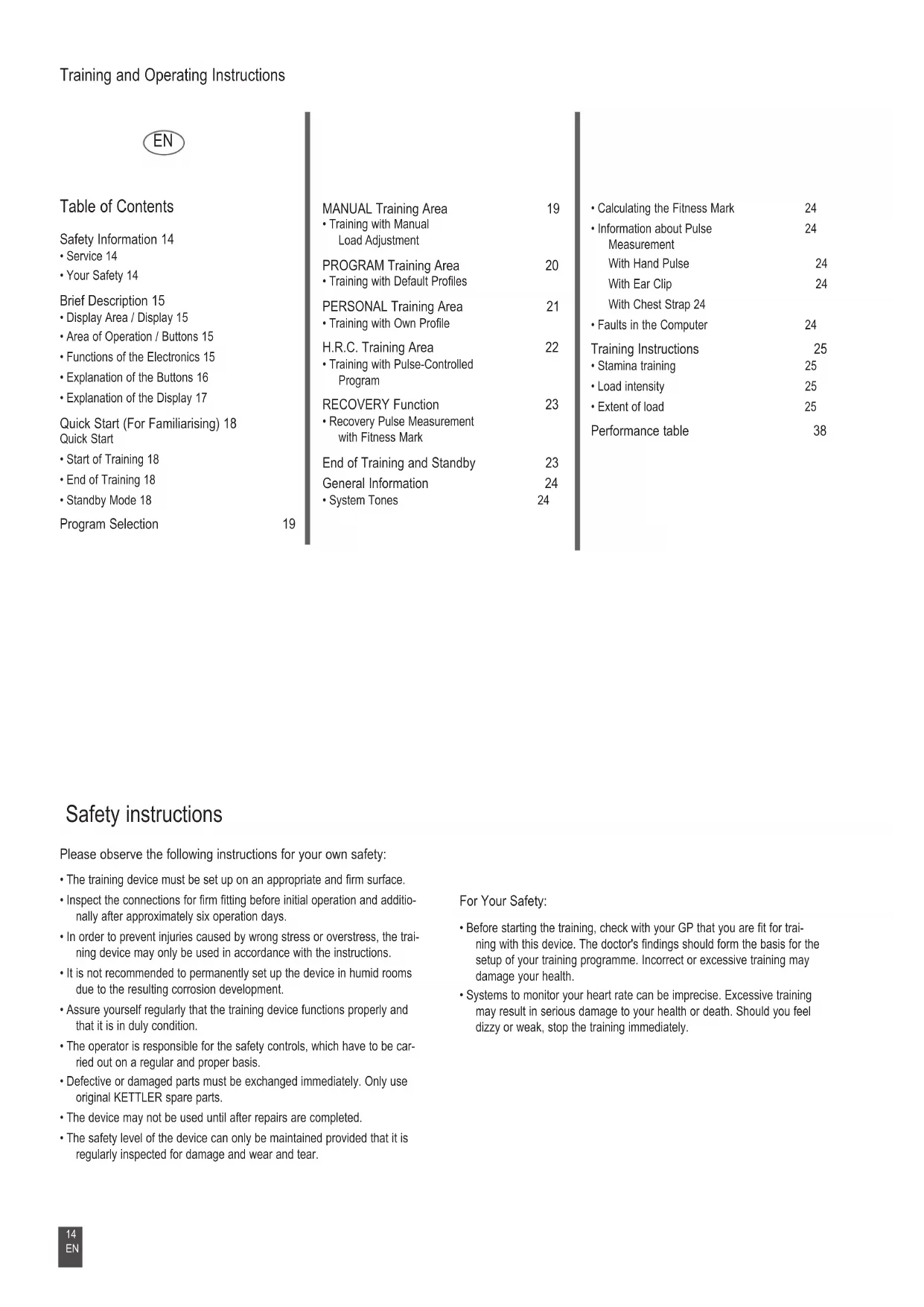 - Systems to monitor your heart rate can be imprecise. Excessive training may result in serious damage to your health or death. Should you feel dizzy or weak, stop the training immediately. Table of Contents Safety Information 14
