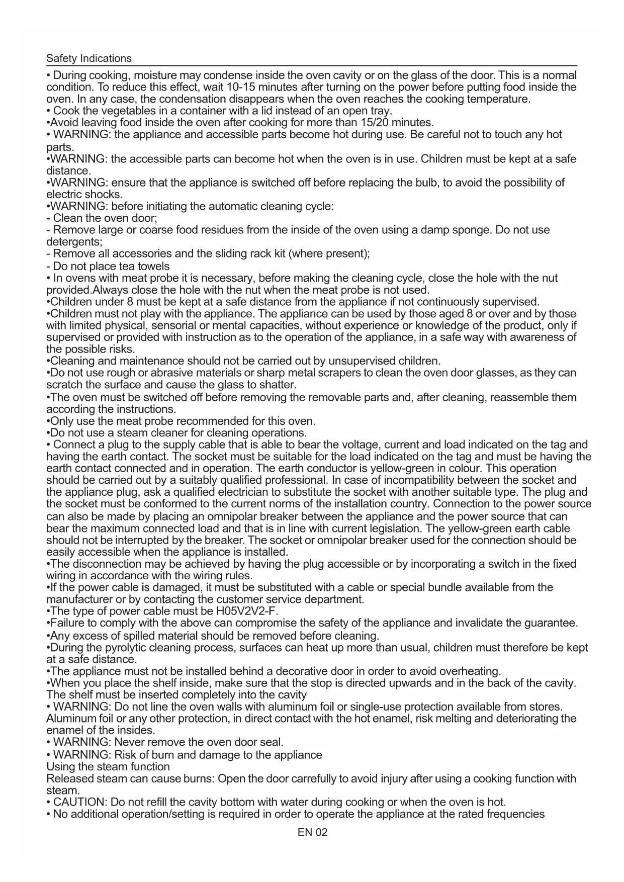 - No additional operation/setting is required in order to operate the appliance at the rated frequencies Safety Indications EN 02Oven Cleaning and Maintenance General Instructions