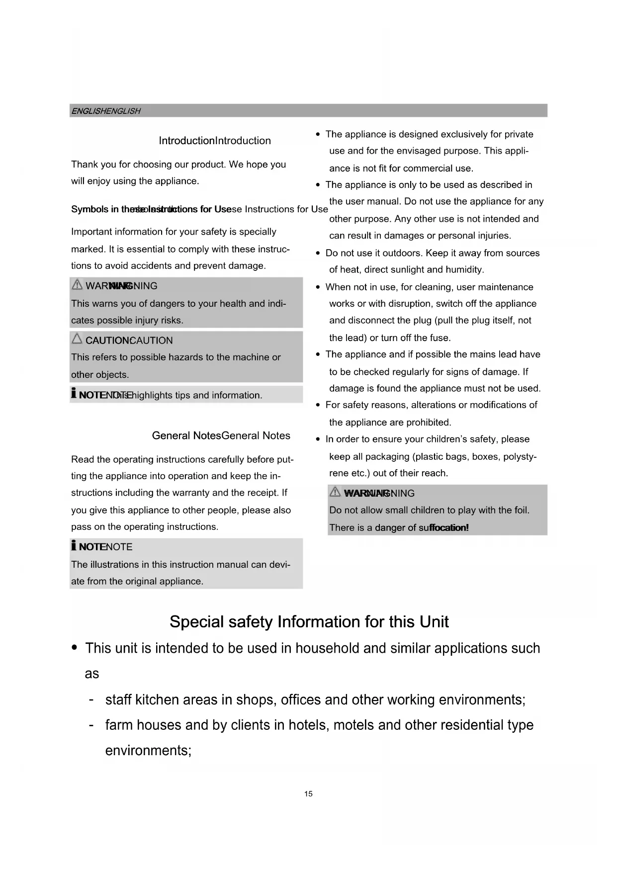 - The appliance is designed exclusively for private use and for the envisaged purpose. This appli- ance is not fit for commercial use.