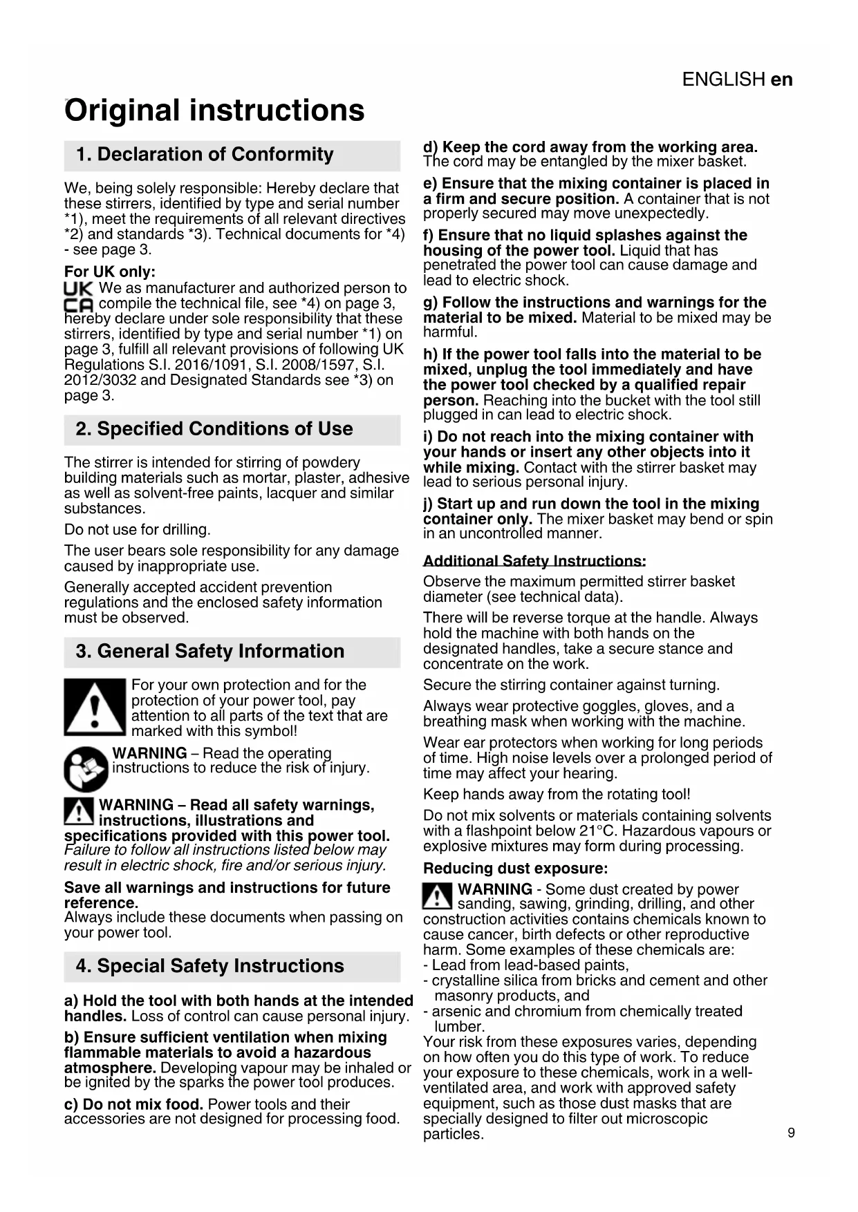 UK We as manufacturer and authorized person to compile the technical file, see *4) on page 3, hereby declare under sole responsibility that these stirrers, identified by type and serial number *1) on page 3, fulfill all relevant provisions of following UK Regulations S.I. 2016/1091, S.I. 2008/1597, S.I. 2012/3032 and Designated Standards see *3) on page 3.