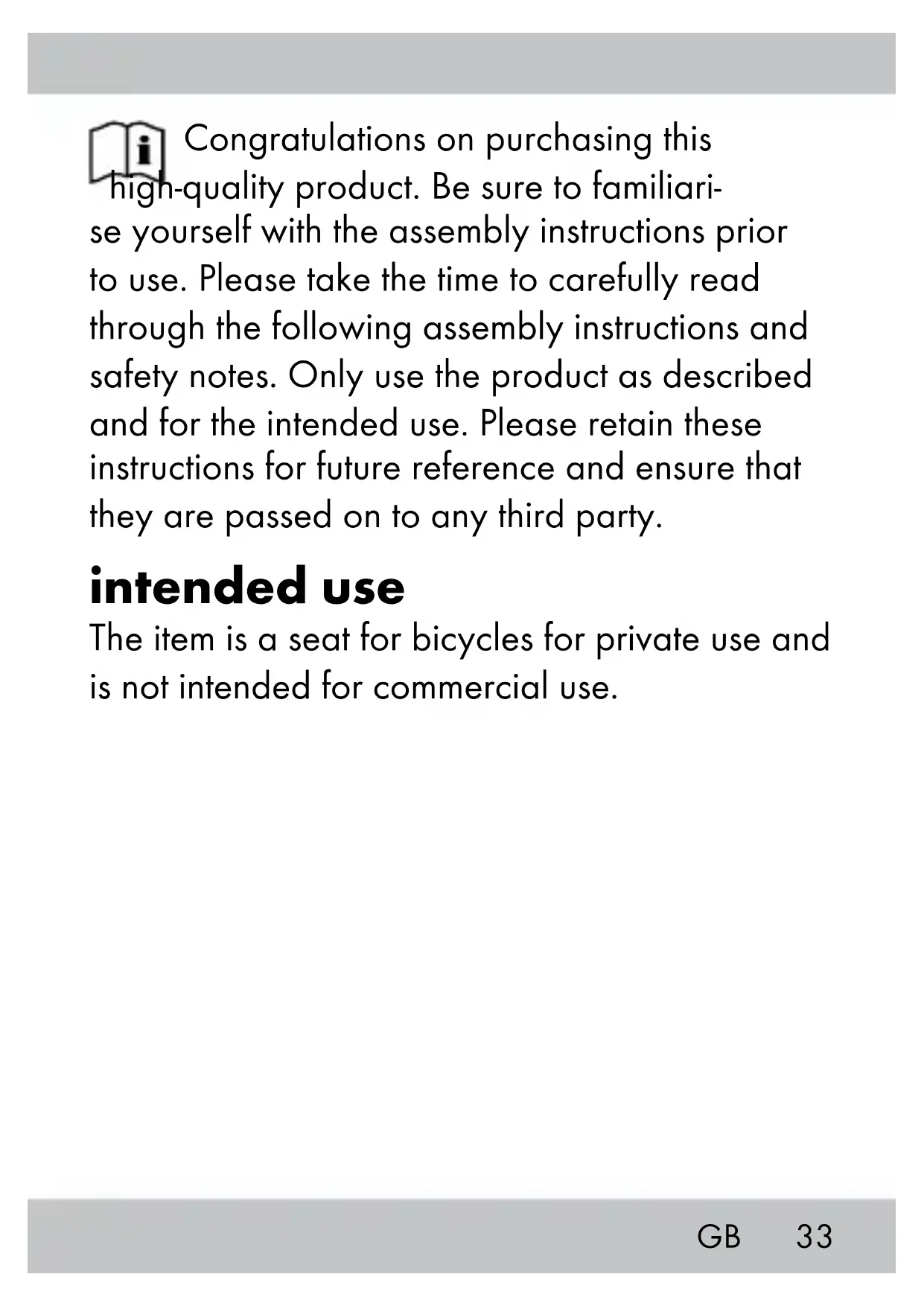 Download the instructions for your Bicycle saddle in PDF format for free! Find your manual IAN 89267 - CRIVIT and take your electronic device back in hand. On this page are published all the documents necessary for the use of your device. IAN 89267 by CRIVIT.