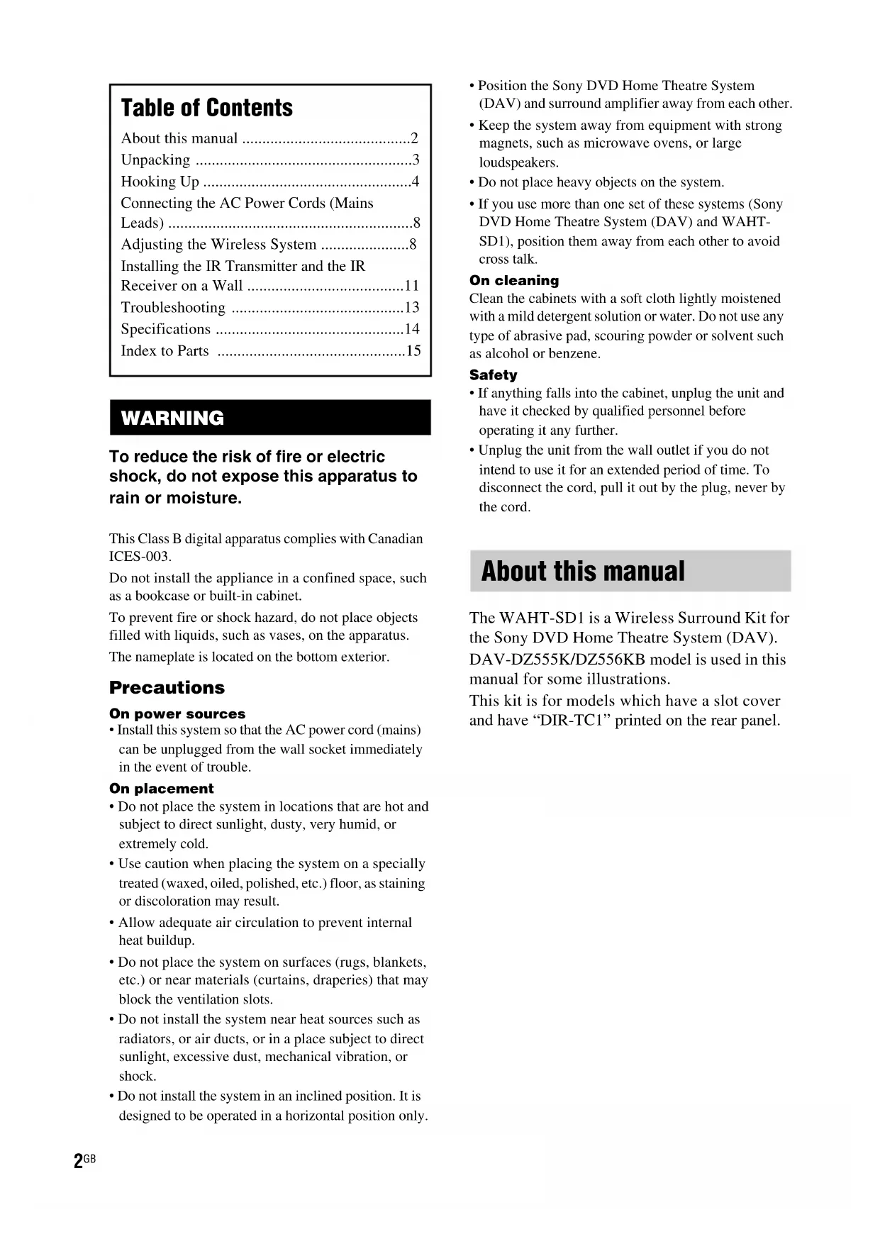 The WAHT-SD1 is a Wireless Surround Kit for the Sony DVD Home Theatre System (DAV). DAV-DZ555K/DZ556KB model is used in this manual for some illustrations.