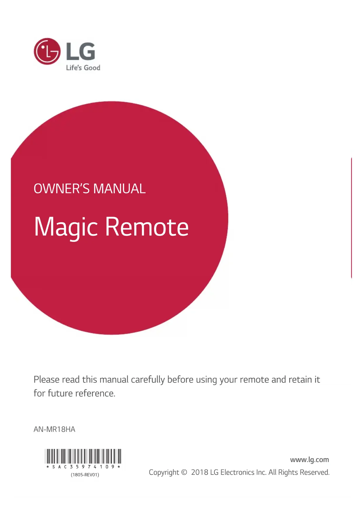 AN-MR18HA Please read this manual carefully before using your remote and retain it for future reference. Magic Remote