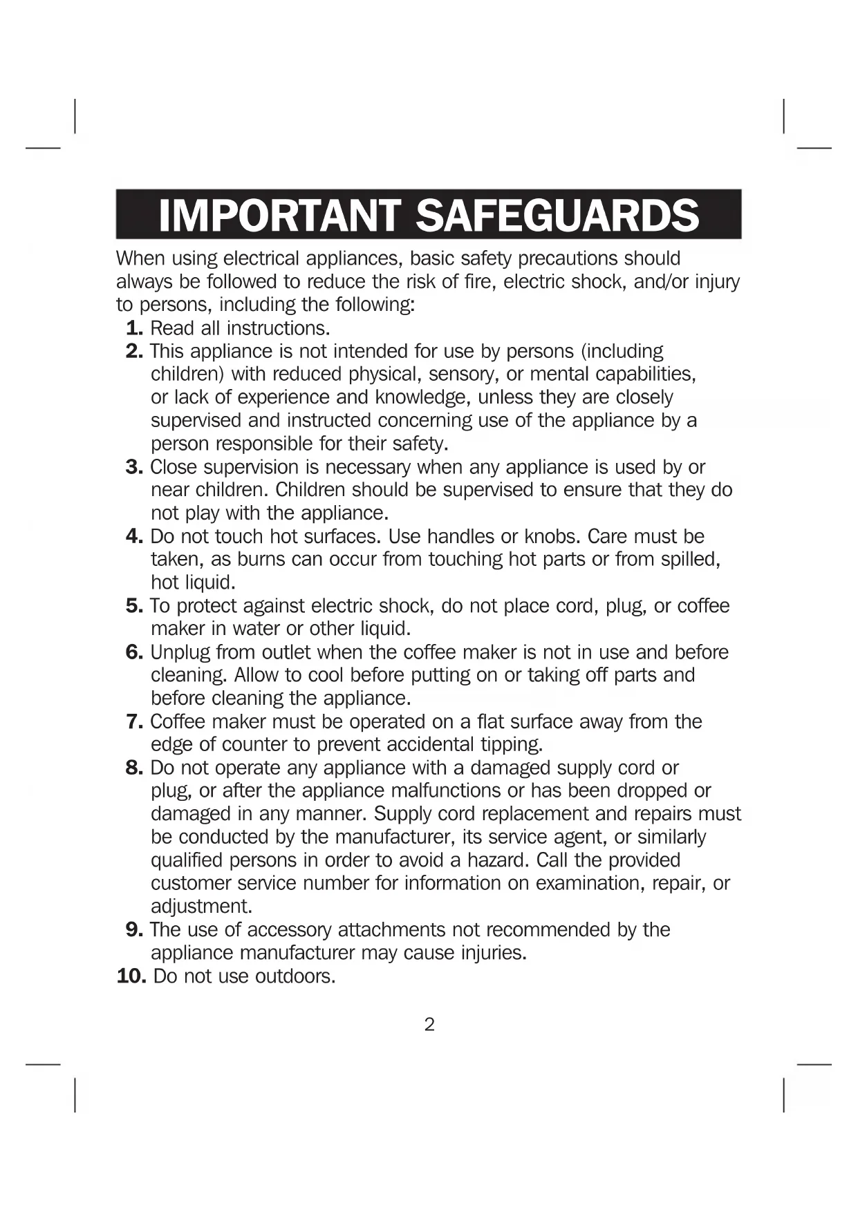 Single-Serve Plus Coffee Maker Cafetière 1 tasse Plus Cafetera Individual Plus2 When using electrical appliances, basic safety precautions should always be followed to reduce the risk of fire, electric shock, and/or injury to persons, including the following: