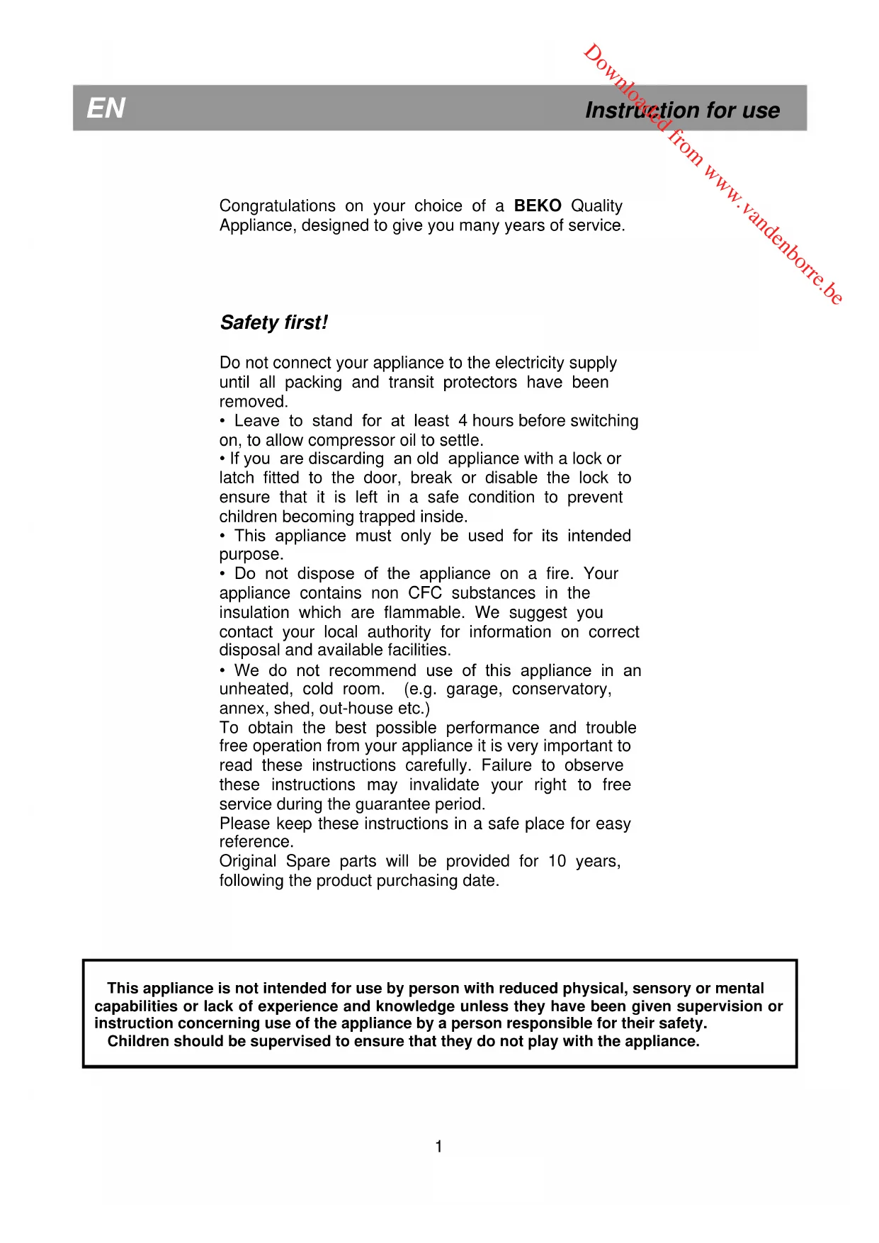 Downloaded from www.vandenborre.be7 Downloaded from www.vandenborre.beCongratulations on your choice of a BEKO Quality Appliance, designed to give you many years of service.