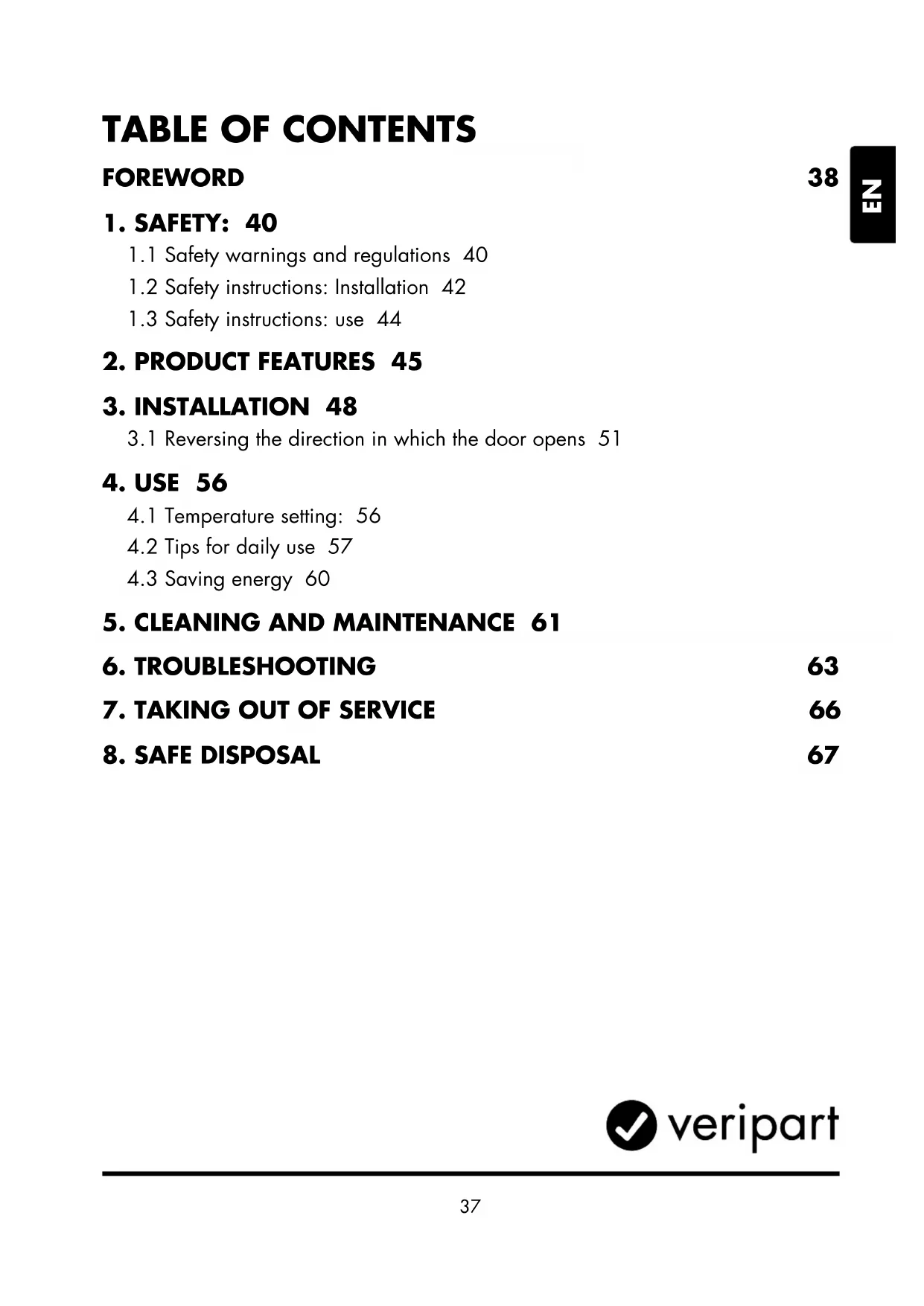 VPKVC176W - Fridge Veripart - Free user manual and instructions