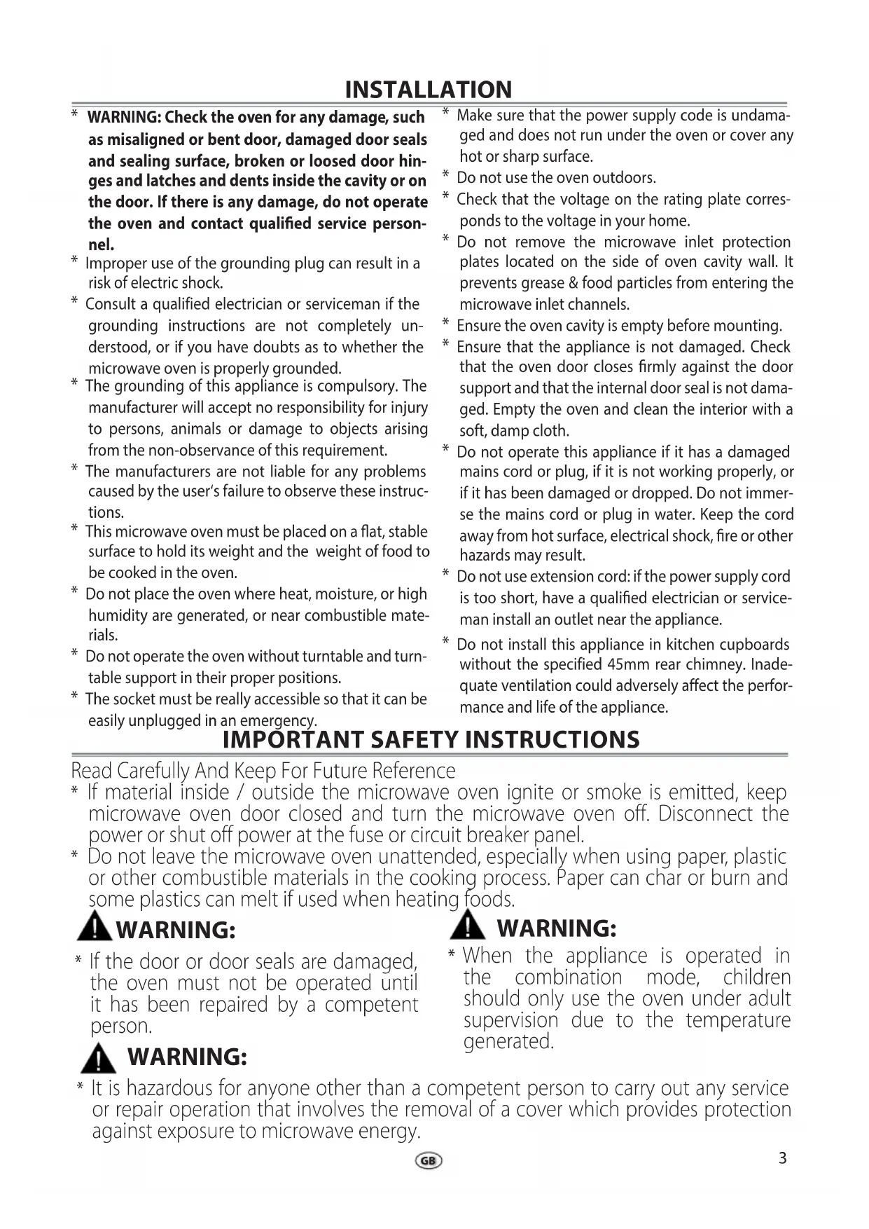 - When the appliance is operated in the combination mode, children should only use the oven under adult supervision due to the temperature generated.