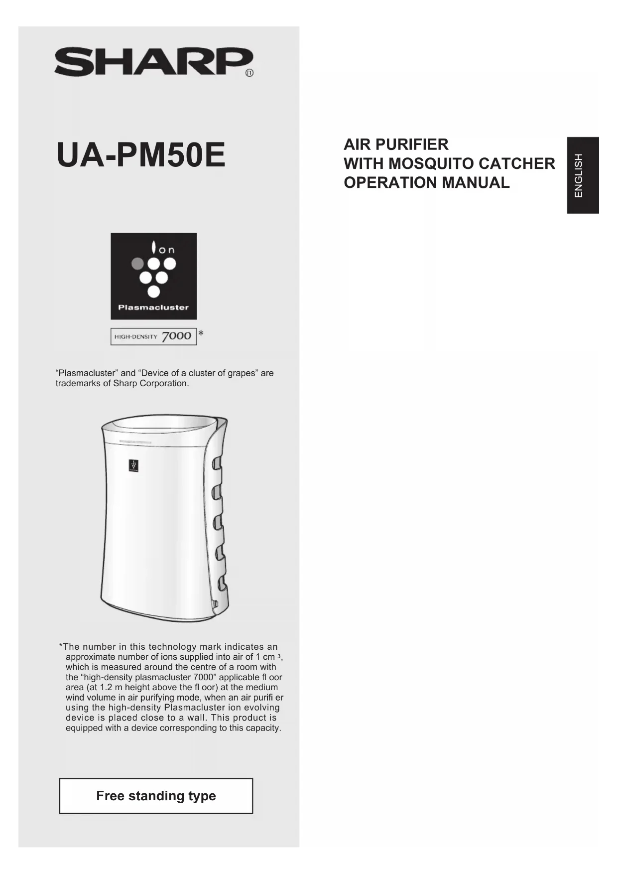 OPERATION MANUAL “Plasmacluster” and “Device of a cluster of grapes” are trademarks of Sharp Corporation. Free standing type *The number in this technology mark indicates an approximate number of ions supplied into air of 1 cm