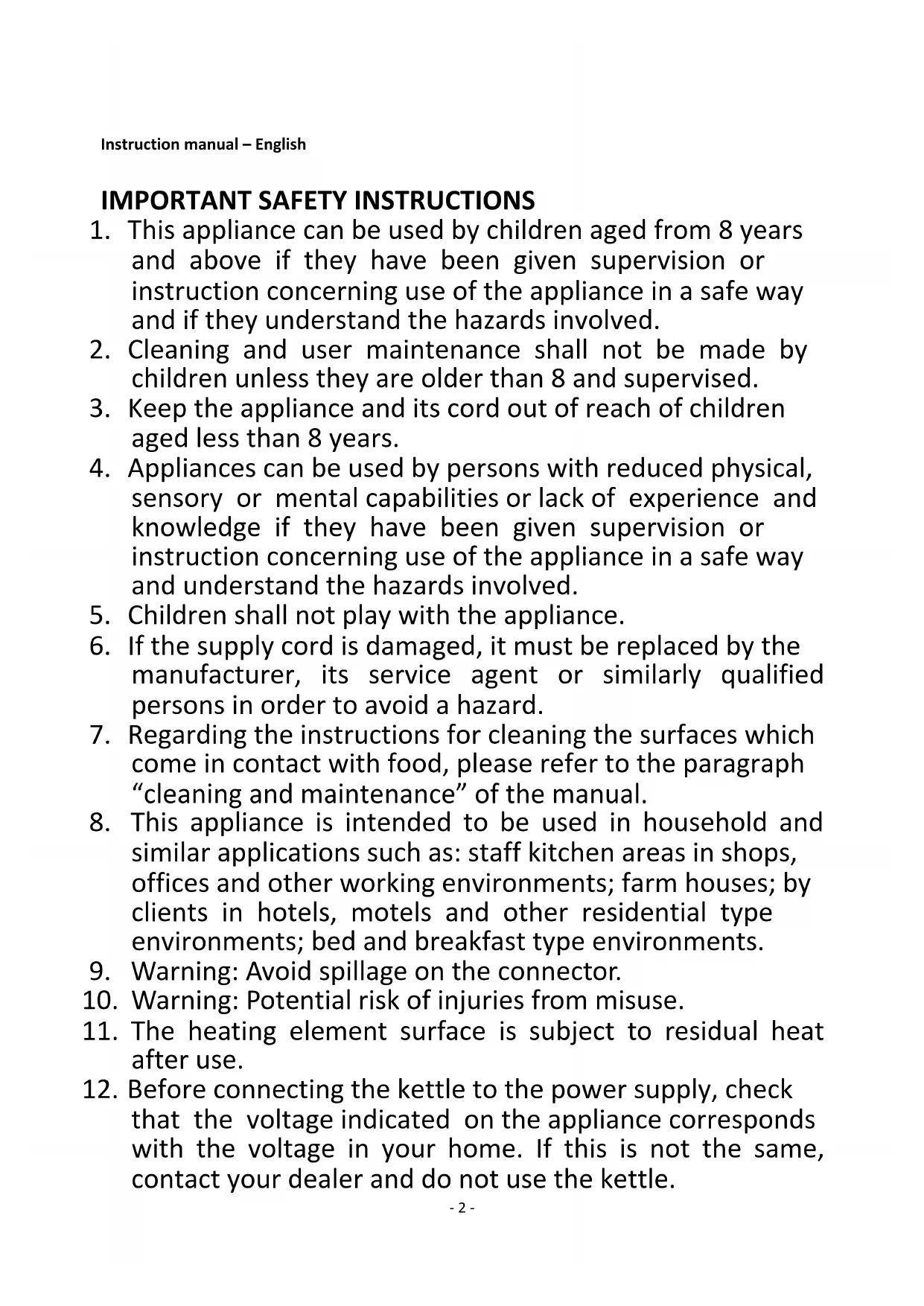 that the voltage indicated on the appliance corresponds with the voltage in your home. If this is not the same, contact your dealer and do not use the kettle.- 3 -