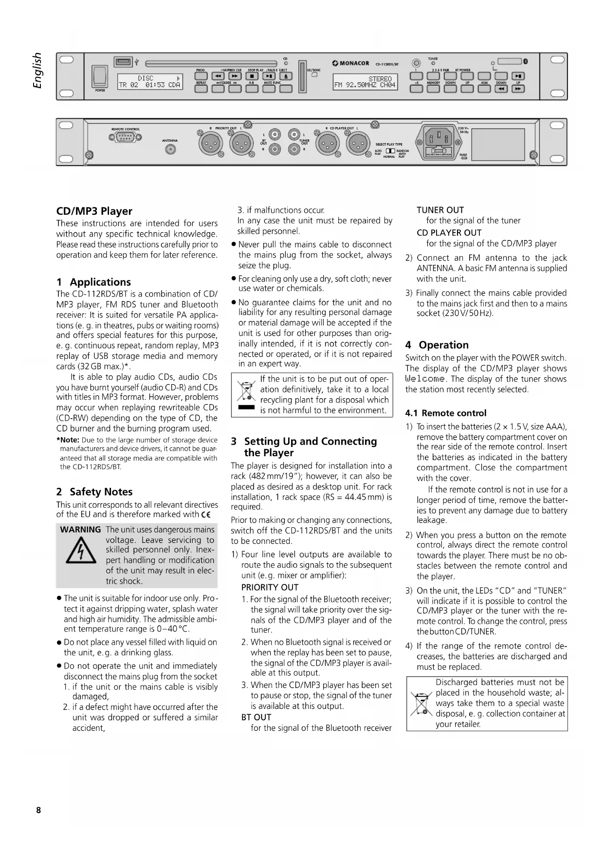 USER MANUAL CD112RDSBT Monacor