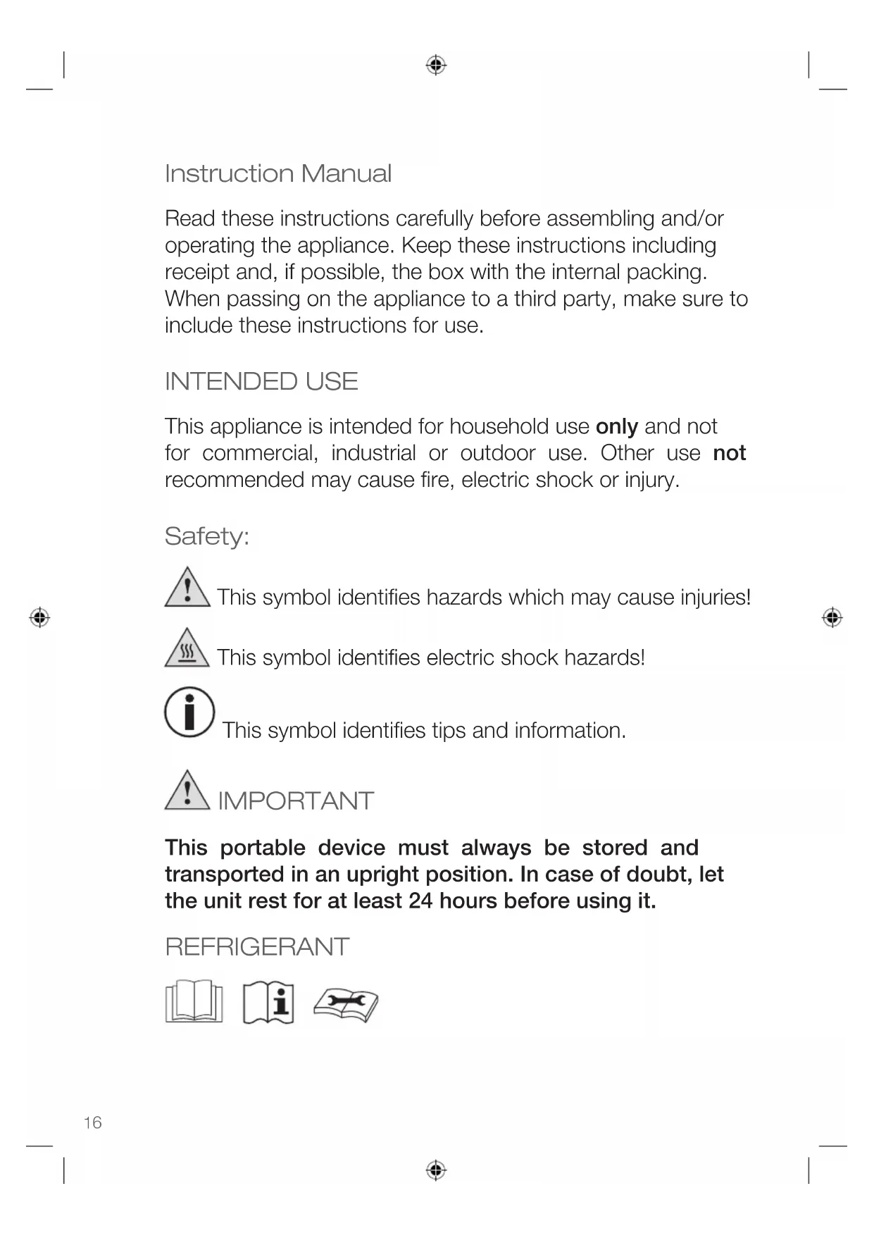- The appliance is only suitable for indoor use and is not suitable for other applications.