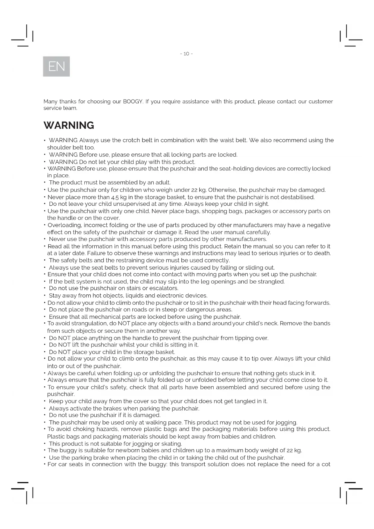 - Ensure that all mechanical parts are locked before using the pushchair.