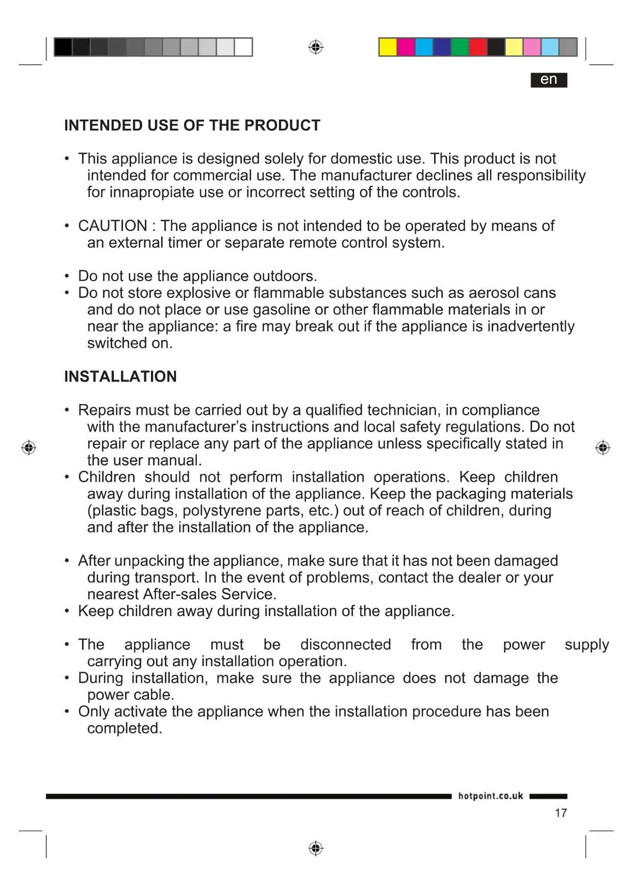 USER MANUAL HB 080SP UP0 HOTPOINT