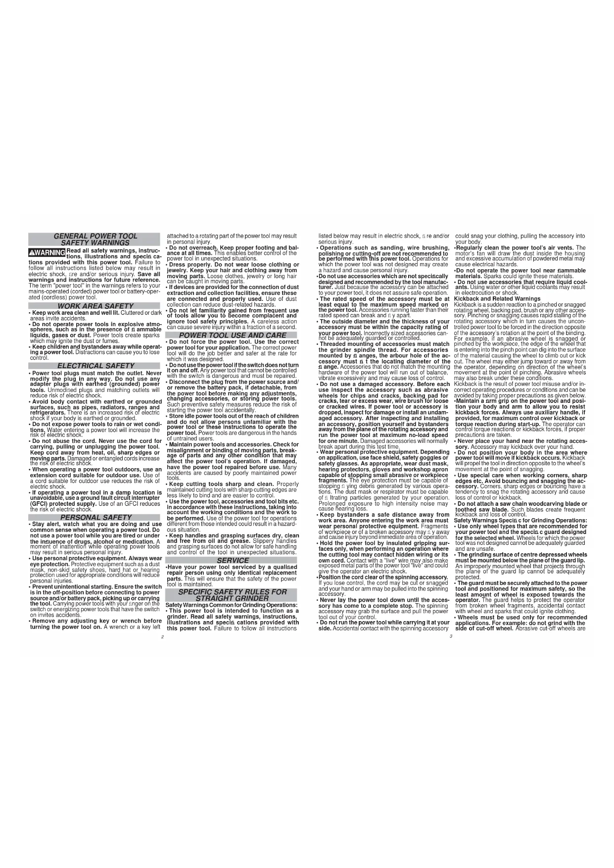 STRAIGHT GRINDER Safety Warnings Common for Grinding Operations: