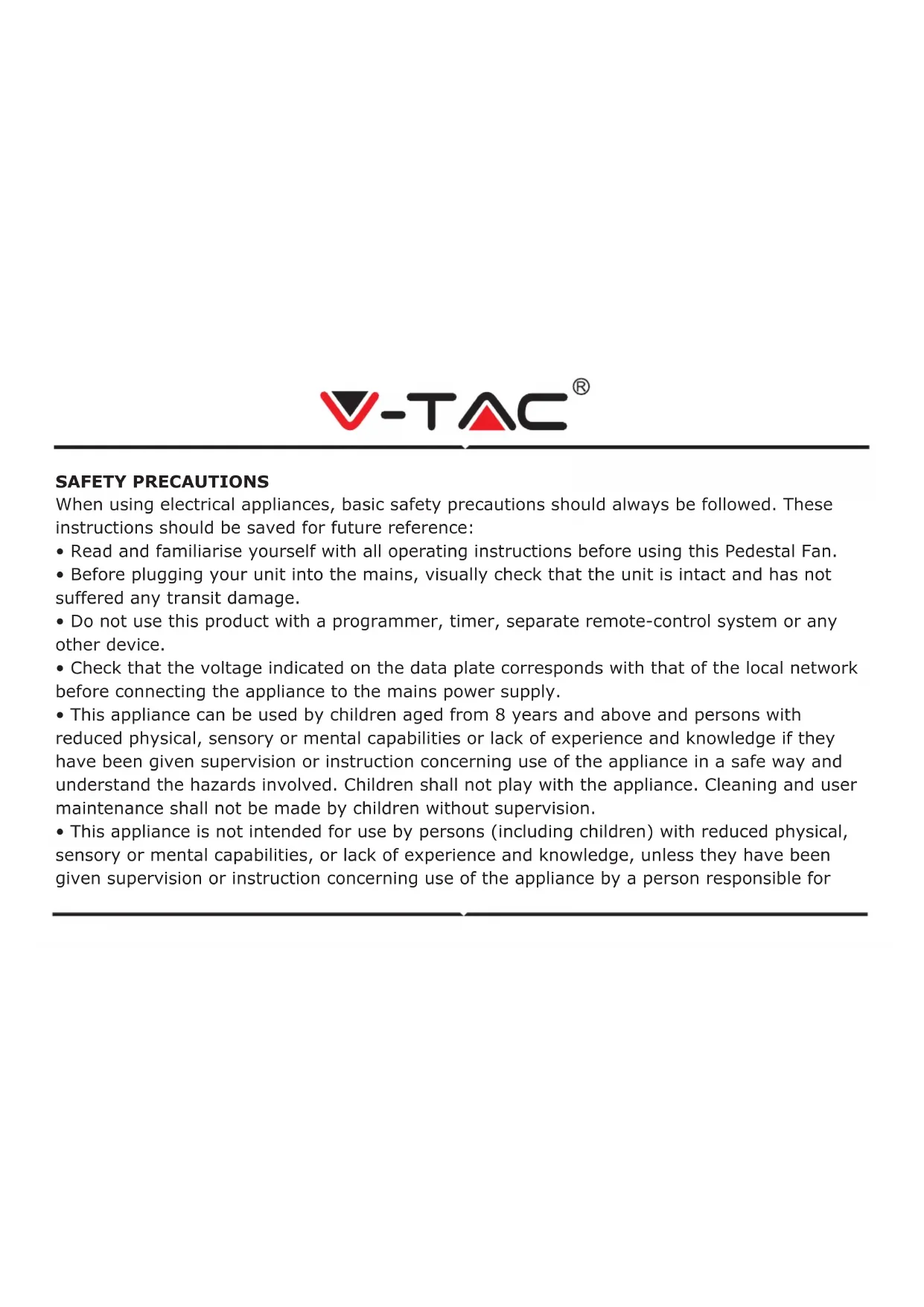 - Read and familiarise yourself with all operating instructions before using this Pedestal Fan.