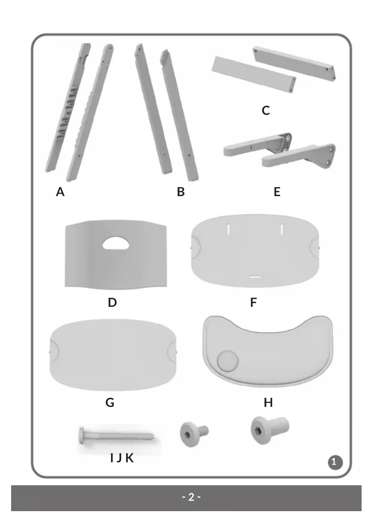- Insert the nut (K) in the top hole on the internal side of the rear leg. Put the front leg and elbow rest against each other and then screw the short screw (J) with the Allen key. Do the same on the other side. b) How to assemble backrest (see fig. 3):