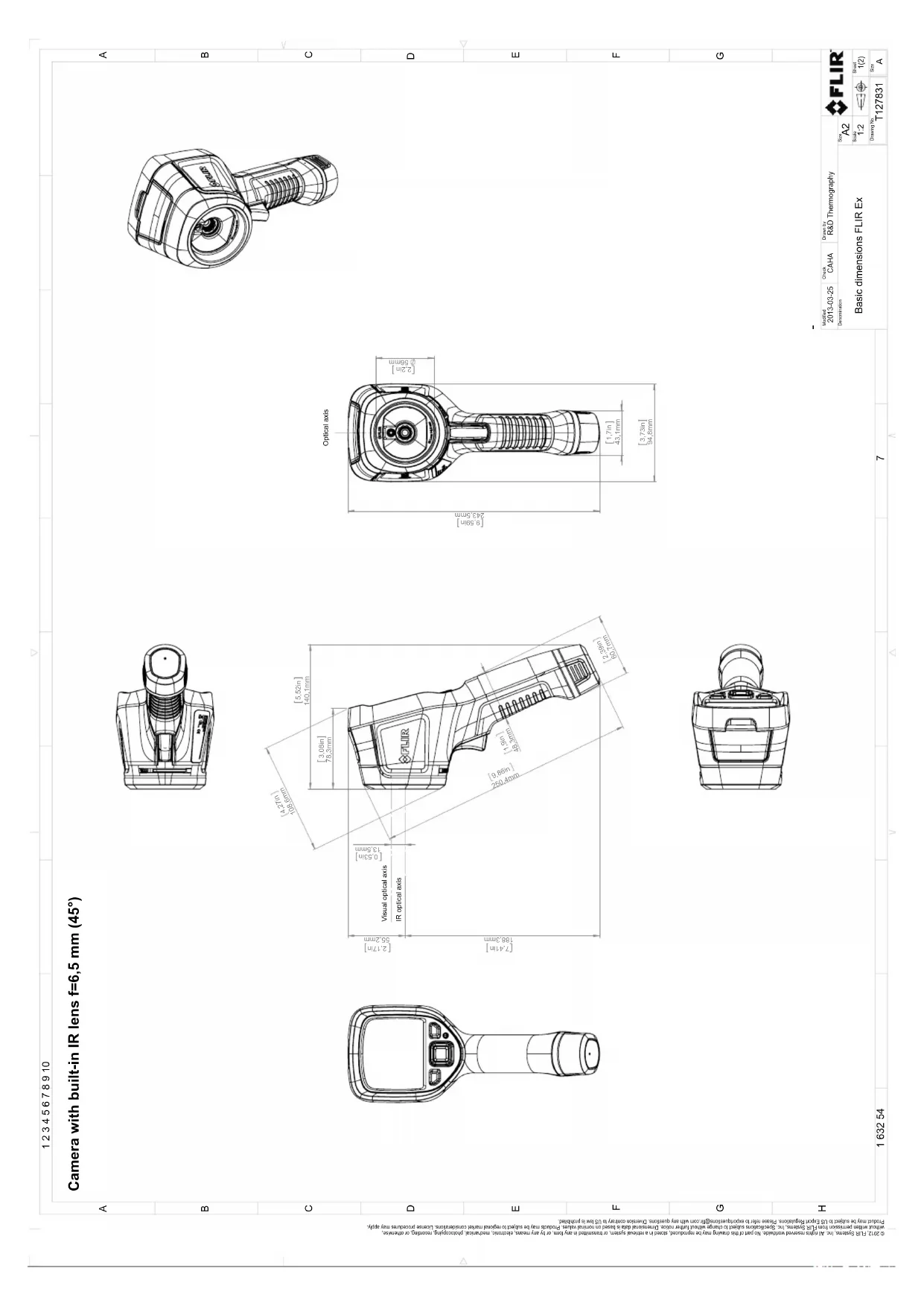 1:2 Scale © 2012, FLIR Systems, Inc. All rights reserved worldwide. No part of this drawing may be reproduced, stored in a retrieval system, or transmitted in any form, or by any means, electronic, mechanical, photocopying, recording, or otherwise, without written permission from FLIR Systems, Inc. Specifications subject to change without further notice. Dimensional data is based on nominal values. Products may be subject to regional market considerations. License procedures may apply. Product may be subject to US Export Regulations. Please refer to exportquestions@flir.com with any questions. Diversion contrary to US law is prohibited. -Déclaration de conformité CE
