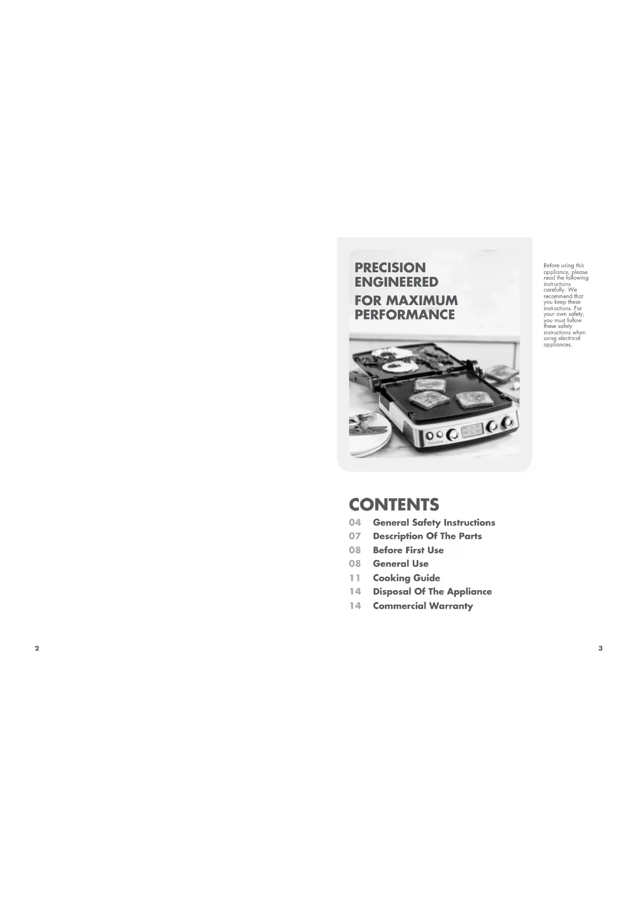 PRECISION ENGINEERED FOR MAXIMUM PERFORMANCE Before using this appliance, please read the following instructions carefully. We recommend that you keep these instructions. For your own safety, you must follow these safety instructions when using electrical appliances.4 5 GENERAL SAFETY INSTRUCTIONS
