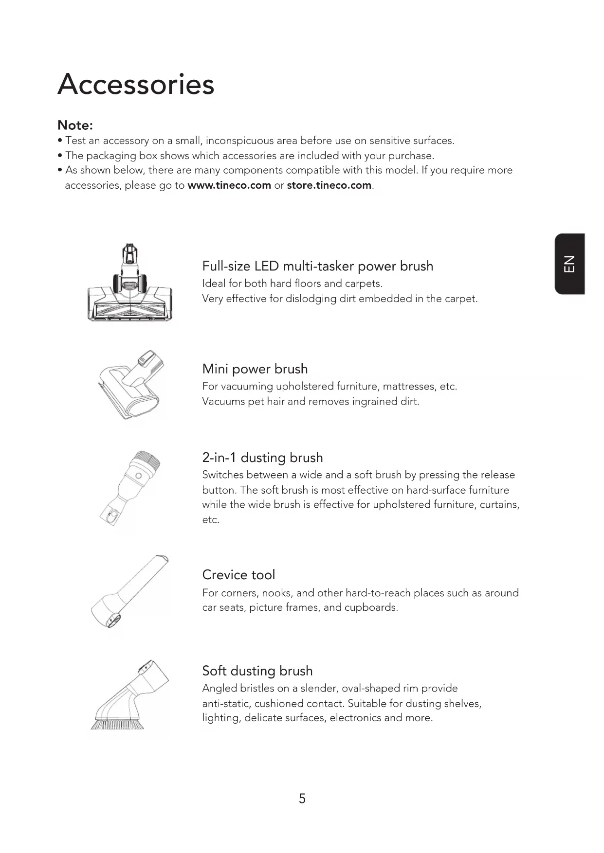 Compatible with all non-motorized Tineco accessories.