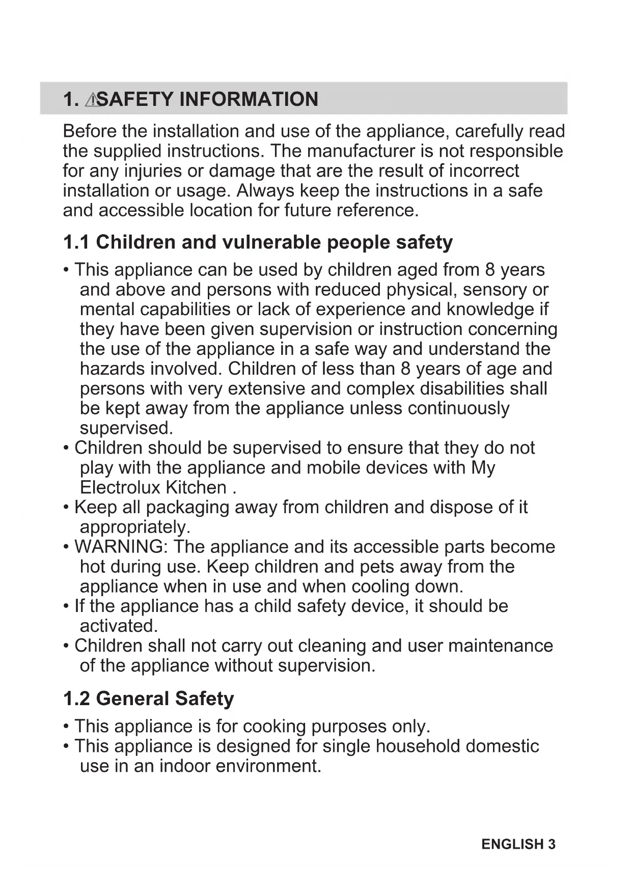 - Children should be supervised to ensure that they do not play with the appliance and mobile devices with My Electrolux Kitchen .