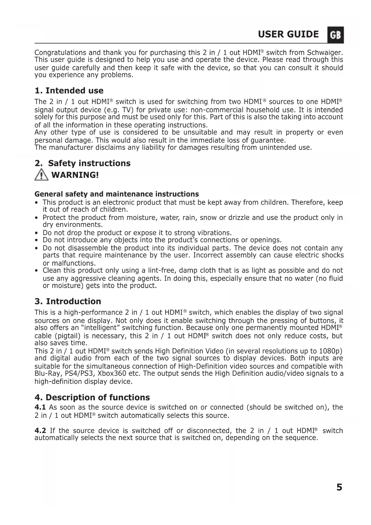 HDM21A - Switch Schwaiger - Free user manual and instructions