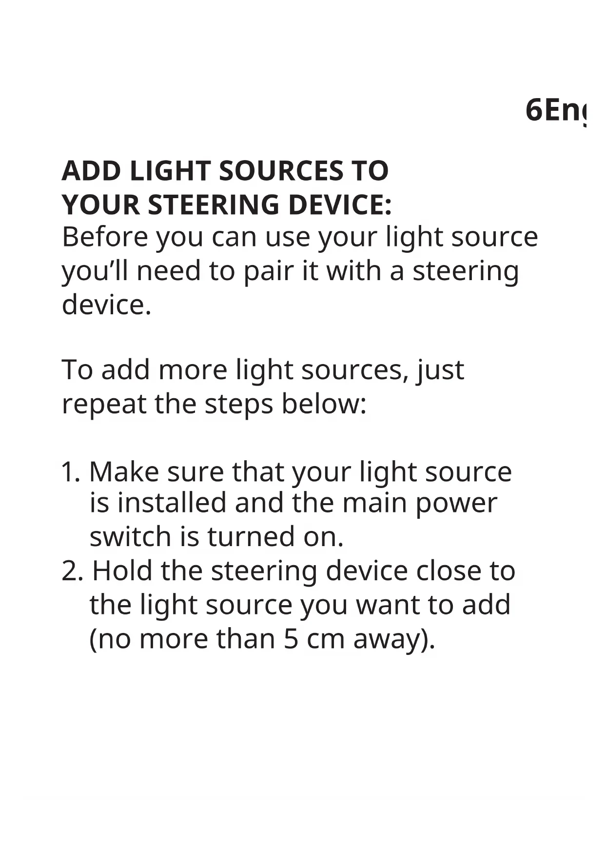 YOUR STEERING DEVICE: Before you can use your light source you’ll need to pair it with a steering device. To add more light sources, just repeat the steps below: