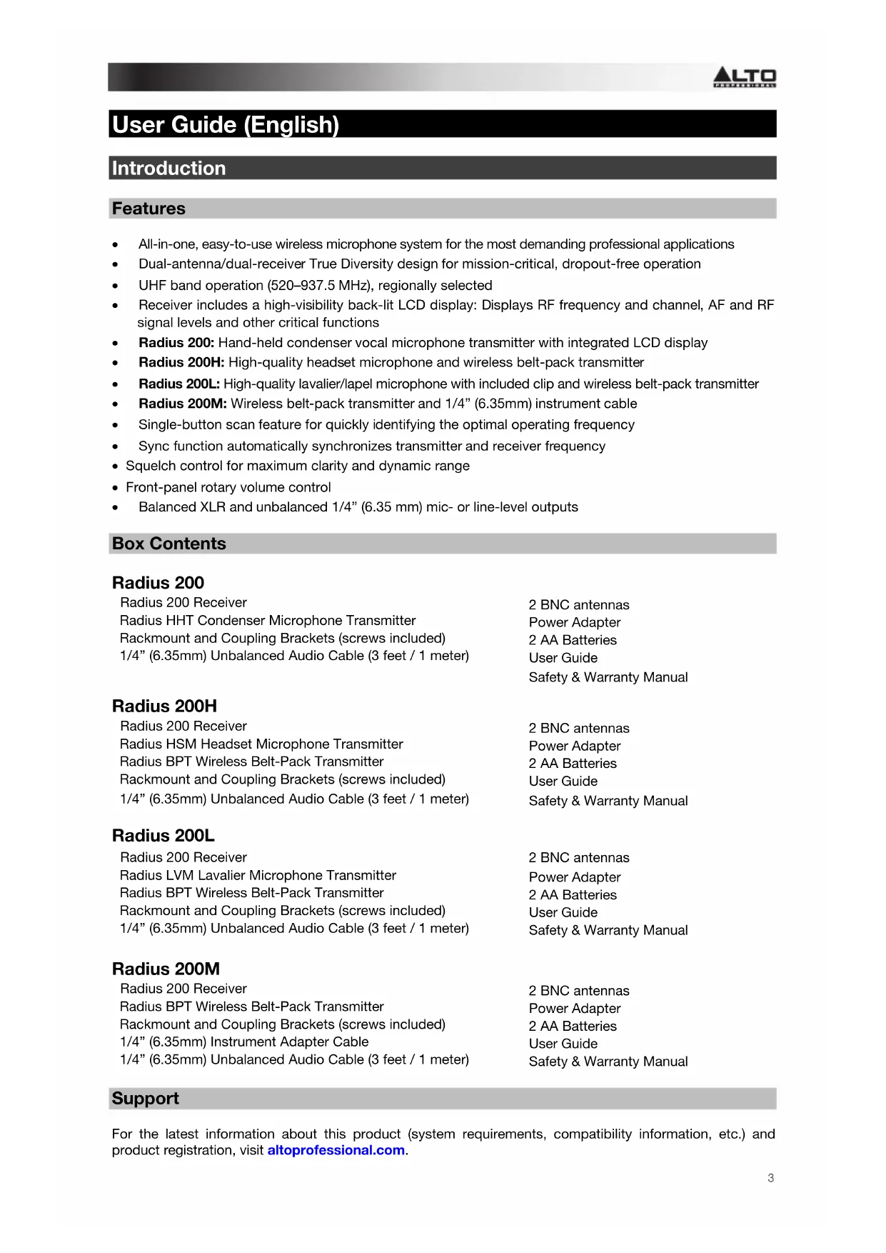 Radius 200L - Microphone ALTO - Free user manual and instructions