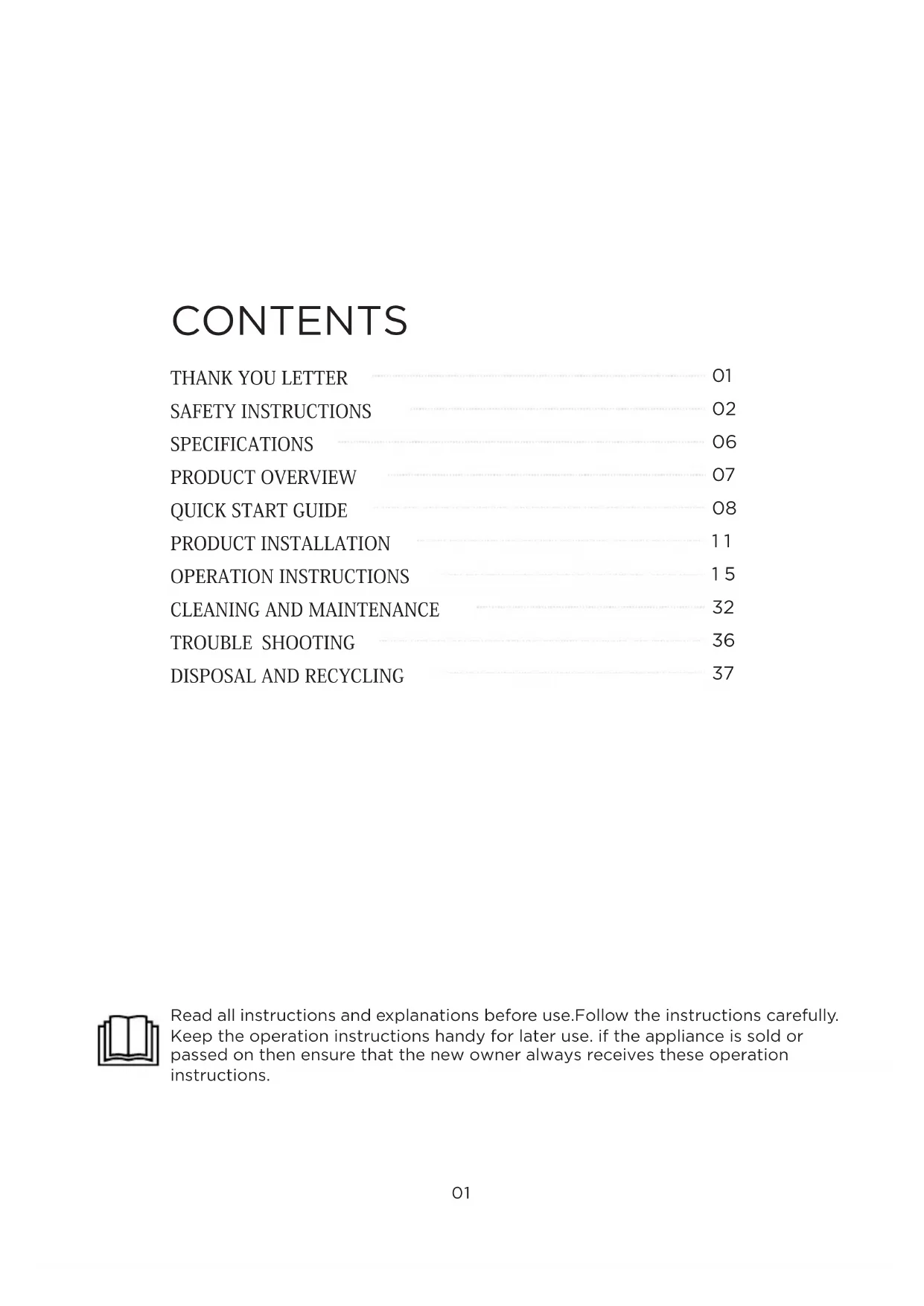 Please read the following safety information thoroughly and follow it strictly to minimize the risk of fire or explosion, electric shock and to prevent property damage, personal injury or loss of life. Failing to follow these instructions shall void any warranty.03 Electric Shock Hazard