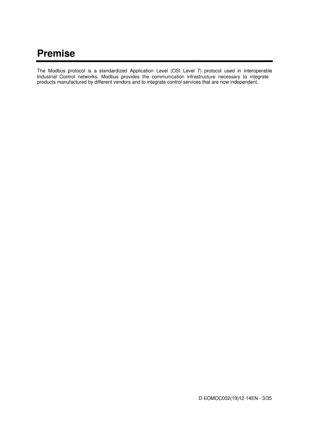 III Chiller Unit Controller into a Building Automation System (BAS). Modbus terms and principles are not defined. Refer to the appropriate specifications for definitions and details. Revision History 1) D-EOMOC00011-14EN November 2014 Created 2) D-EOMOC002(17)12-14EN 17 December 2014 Improved Upgraded ADZ units ATLAS Holding Registers 40025, 40026 3) D-EOMOC002(19)12-14EN 19 December 2014 Improved Improved Upgraded Upgraded ATLAS Holding Registers 40900, 40901, 40902 Appendix B Holding Registers 40011, 40034 Revision History Reference Documents Ref.#1 www.Modbus.orgD-EOMOC002(19)12-14EN - 5/35 Basic Information Compatibility The MicroTech III Chiller Unit Controller conforms to the published Modbus standards. Controllers can communicate on standard Modbus networks using ASCII or RTU transmission mode. The MicroTech III Chiller Unit Controller uses the RTU mode only. Refer to Ref.#1 for more detailed information. Configuring the Microtech III for Modbus Network The MicroTech III Chiller Unit Controller can be configured in an interoperable Modbus network. The controller must have the corresponding Modbus Communication Module installed. The MicroTech III Chiller Unit Controller and the Modbus Communication Module are shipped with default parameter values. Default values may be changed with the unit keypad. Parameters must be adjusted to accommodate your particular network. See the appropriate Operation Manual for default values and keypad operating instructions. See the MicroTech III Modbus Communication Module Installation Manual for details regarding network parameters available via the unit controller keypad/display. Once communication module is set up and communication with network is established, in order to control the MicroTech III over the network, the Unit control source must be turned in “Network” (default is Local). From keypad/display set the Main Menu_View/Set Unit_Status/Settings_Control Source to “Network”. Modbus Registers Addressing The Modbus Communication Module supports zero-based addressing. For example, holding register 40002 is addressed as 0001 in a Modbus message. The following tables assume 4xxxx addressing.D-EOMOC002(19)12-14EN - 6/35 Minimum Integration This section describes the information that assure compliance of Microtech III to the integration criteria for a Modbus network integration. The data/alarm points that represent the minimum integration data points are listed in Table 1 below and in boldface in Table 2 to Table 5. Table 1. MicroTech III Chiller Unit Controller Registers for minimum integration Data/Alarm points Actual Capacity Chiller Enable Setpoint Chiller Mode Setpoint - Network Chiller Status Clear Alarms - Network Evaporator Entering Fluid Temperature Evaporator Leaving Fluid Temperature Capacity Limit Setpoint – Network Cool Setpoint – Network Problem Alarm Code Fault Alarm Code Warning Alarm CodeD-EOMOC002(19)12-14EN - 7/35 Data Points Data Points for Chiller Models Table 2 contains the list of Modbus data points available from the MicroTech III Chiller Unit Controller depending on the chiller model and corresponding unit controller application software. Application software name is available in the unit HMI: see in Main Menu, “About Chiller”. The data points in boldface represent the minimum integration data points listed in Table 1. Table 2. MicroTech III Unit Controller Data Points List for Chiller Model Data Point ACZC ACZH ADZ ATLAS AWS EWWD MNG PFS Active Capacity Limit Output X X X X X X X X Active Energy