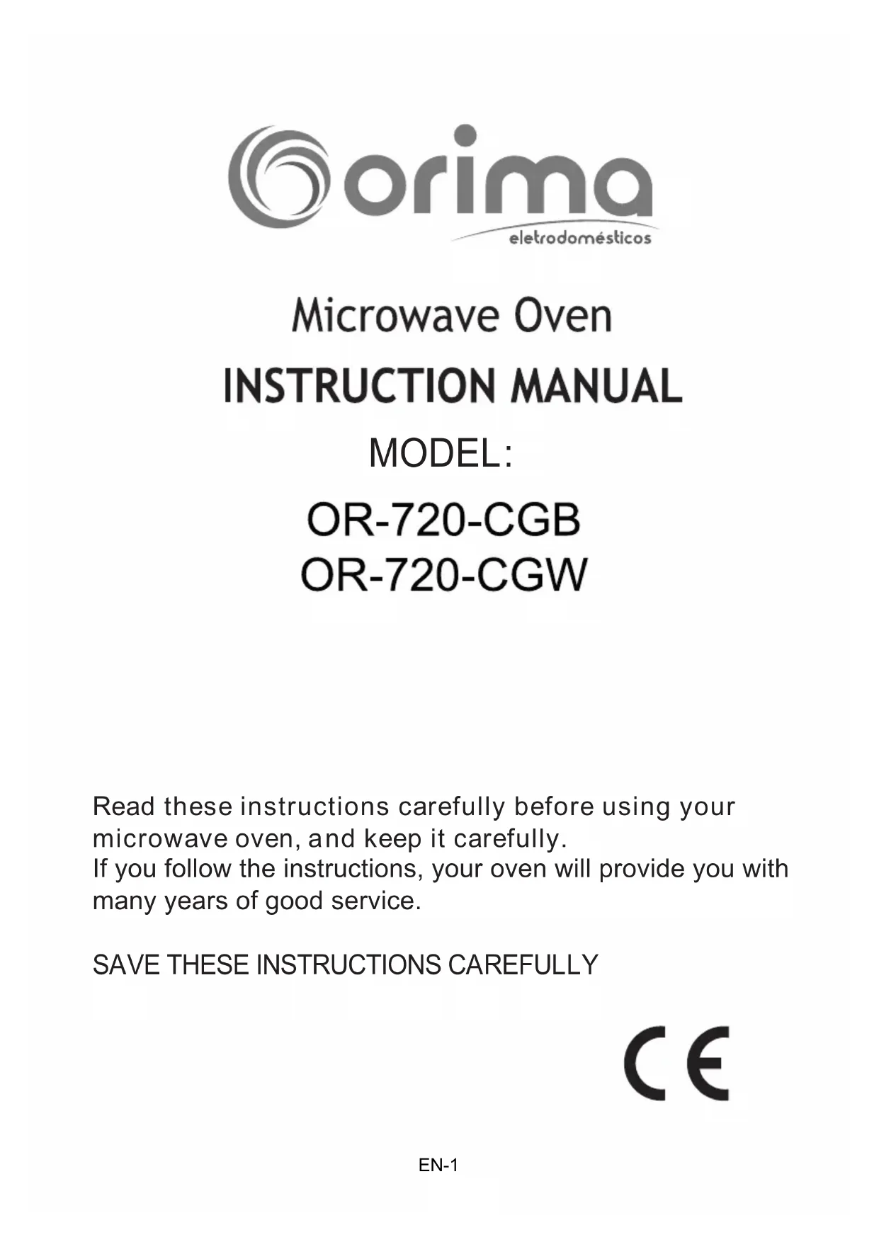 OR720CGB - Microwave Oven Orima - Free user manual and instructions