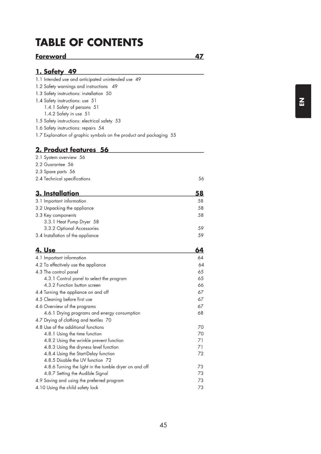 1.7 Explanation of graphic symbols on the product and packaging 55