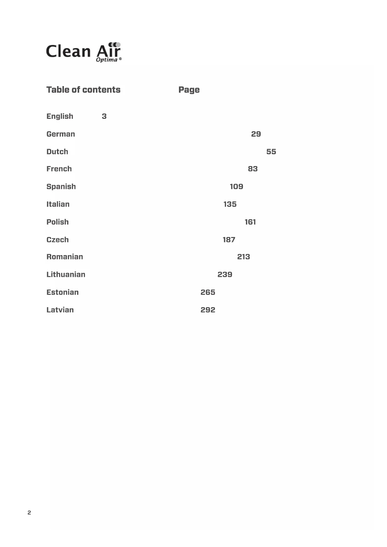 Find the device manual for free VC002 Smart Clean Air Optima in PDF.