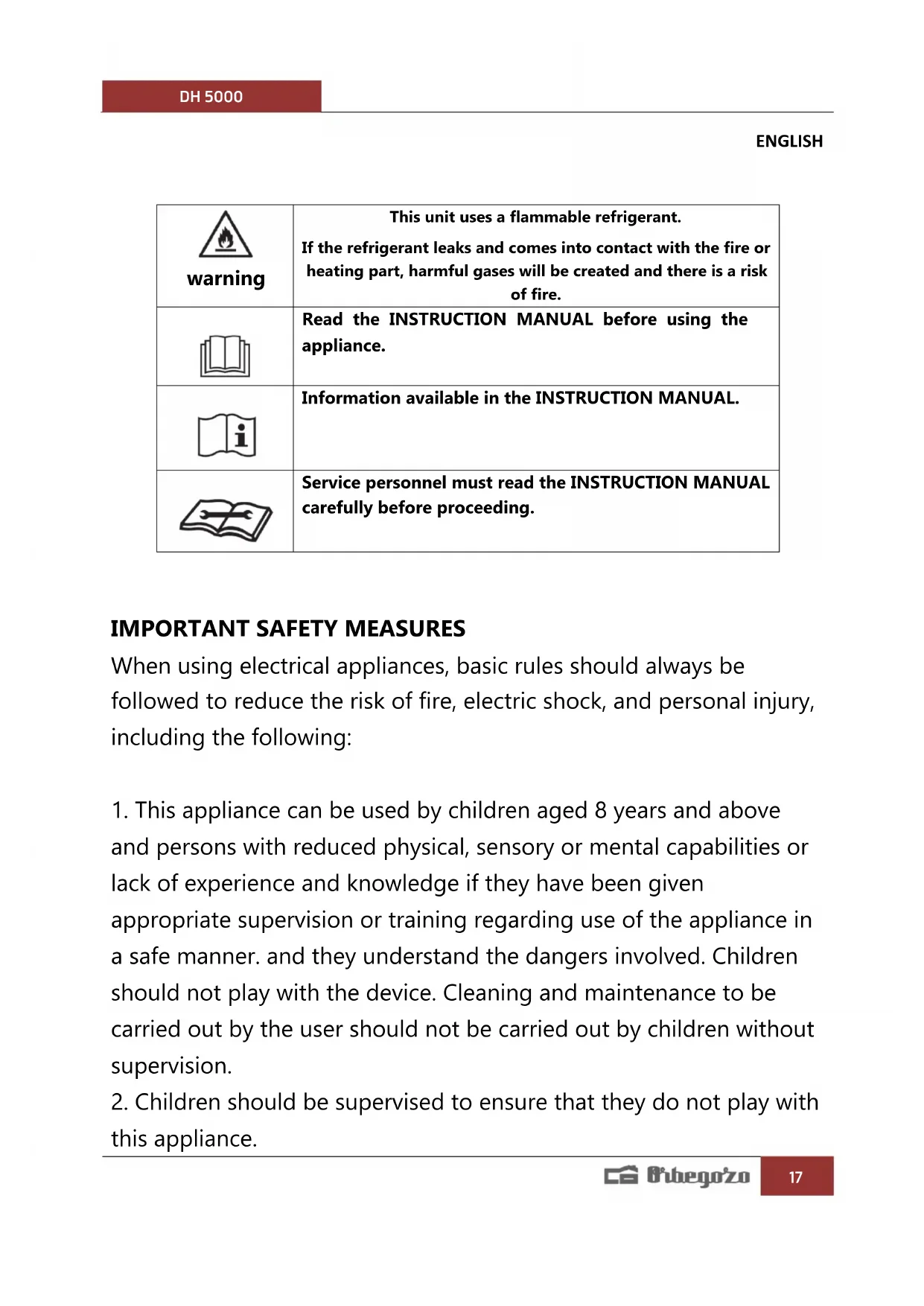 DH 5000 - Dehumidifier Orbegozo - Free user manual and instructions
