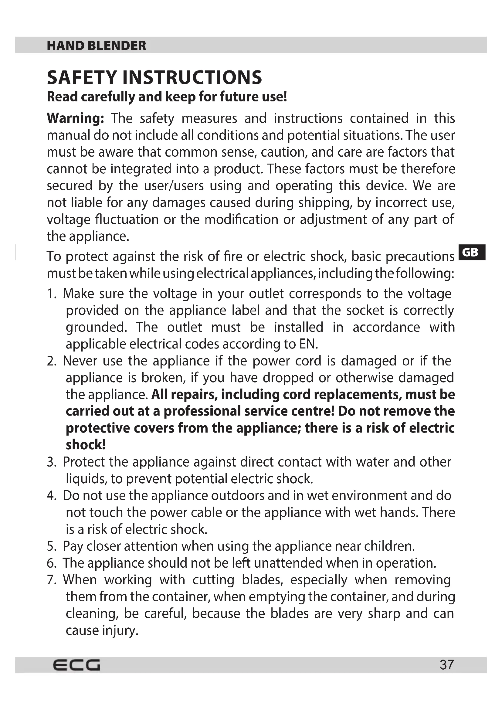HAND BLENDER SAFETY INSTRUCTIONS Read carefully and keep for future use!