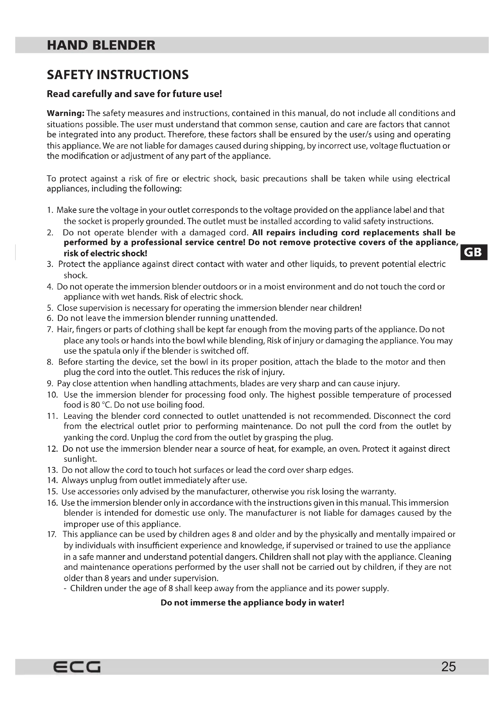 Download the instructions for your Hand blender in PDF format for free! Find your manual RM 420 Set - ECG and take your electronic device back in hand. On this page are published all the documents necessary for the use of your device. RM 420 Set by ECG.