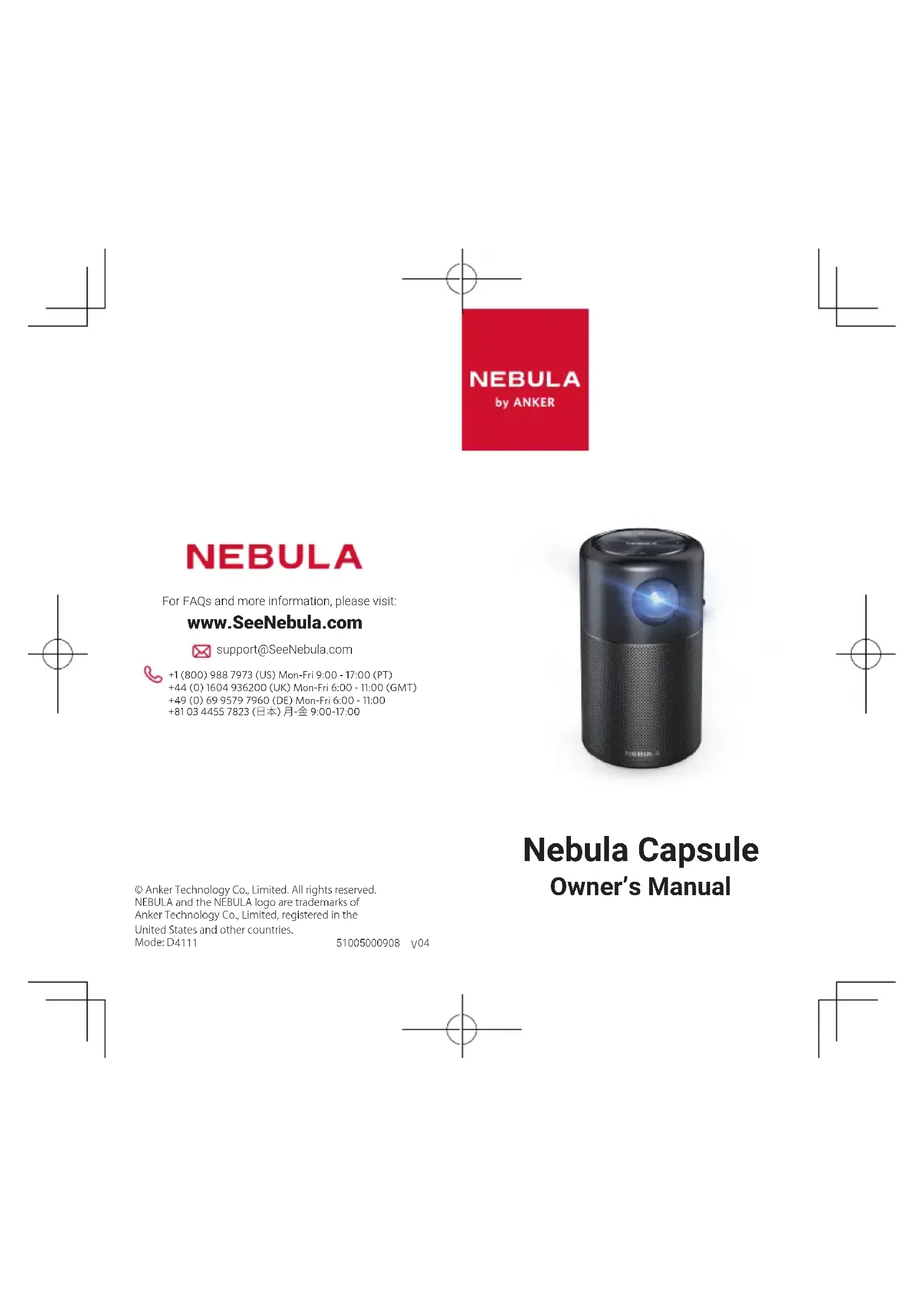 © Anker Technology Co., Limited. All rights reserved. NEBULA and the NEBULA logo are trademarks of Anker Technology Co., Limited, registered in the United States and other countries. Mode: D