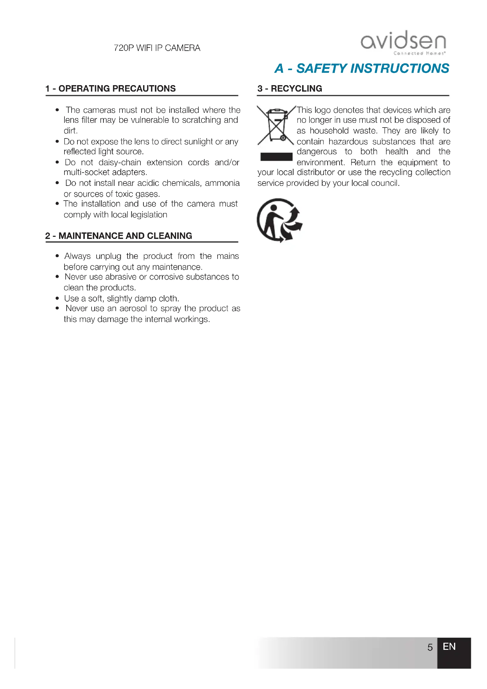 123981 - Surveillance Camera AVIDSEN - Free user manual and instructions