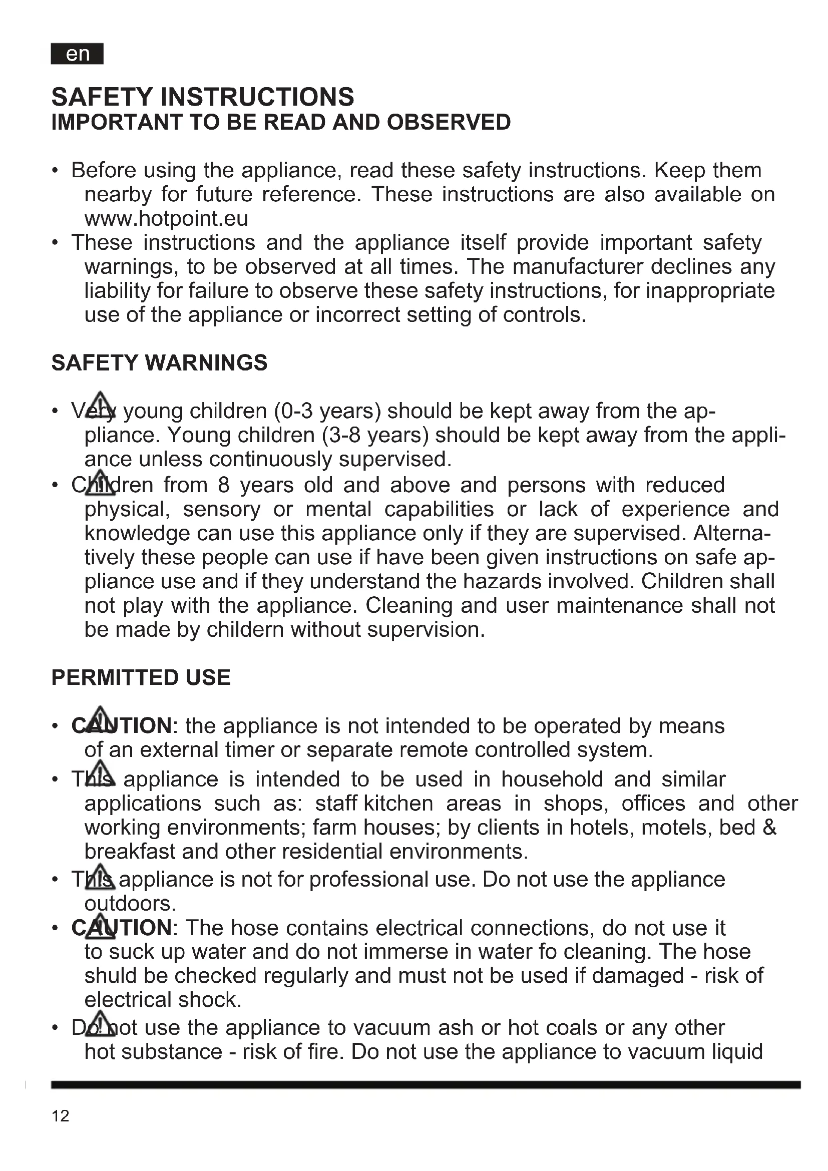 - Before using the appliance, read these safety instructions. Keep them nearby for future reference. These instructions are also available on www.hotpoint.eu